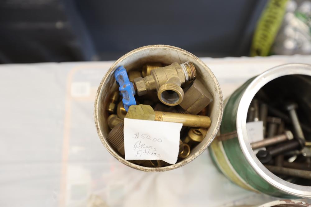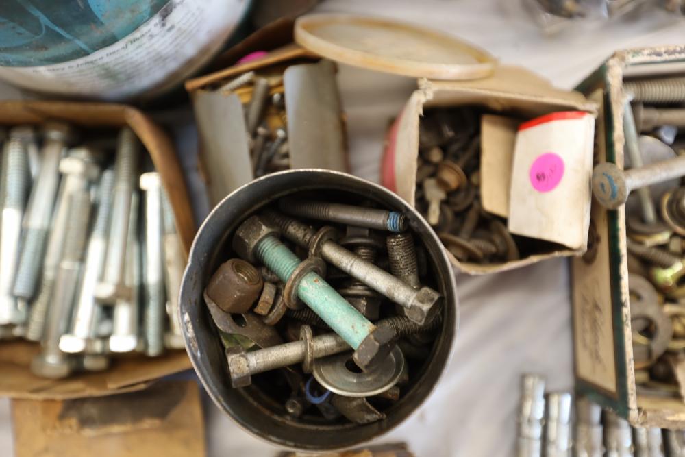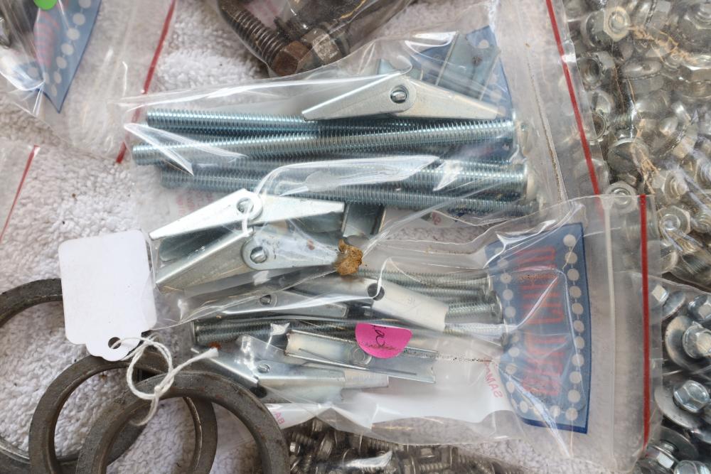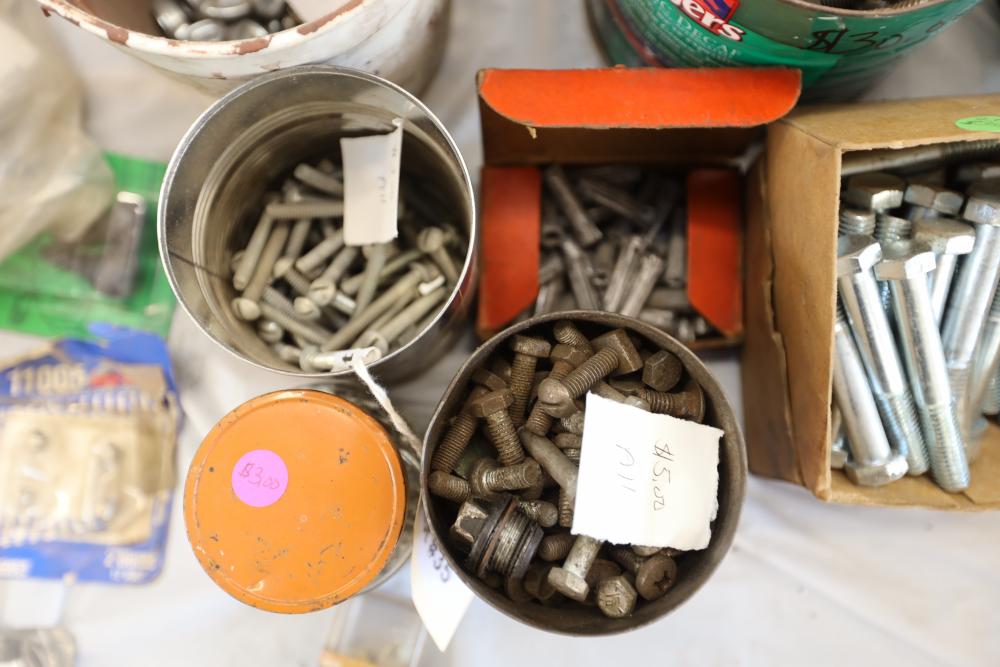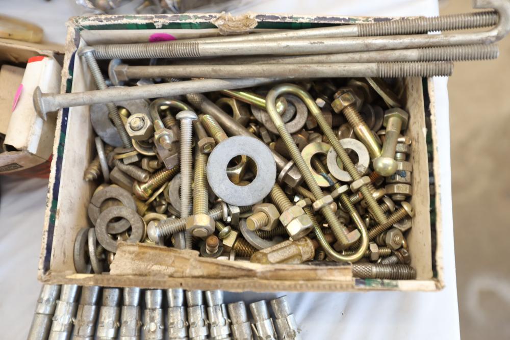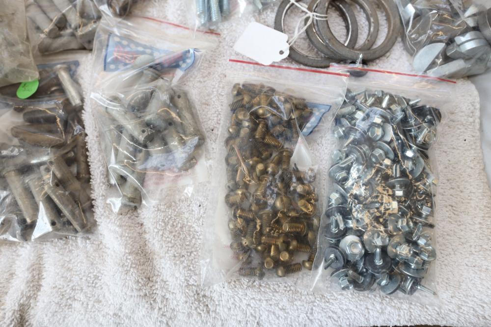 Large assortment of nuts, bolts, hardware, also including Make A Clamp kits, brass fittings, threaded rods, etc.