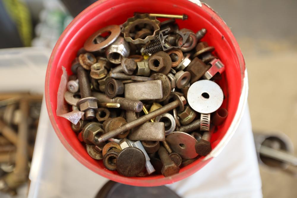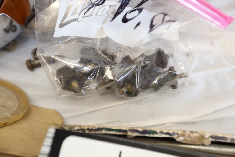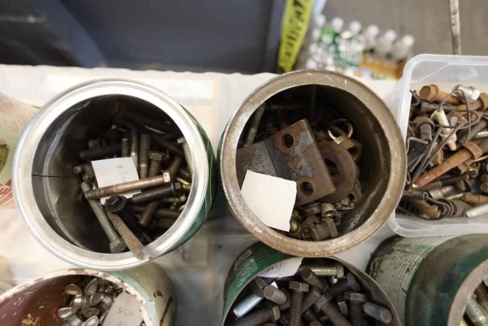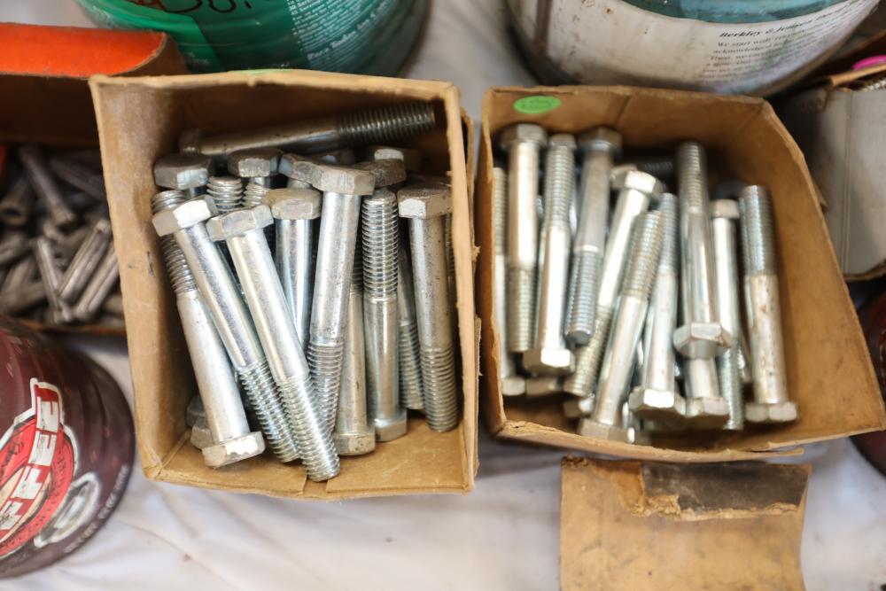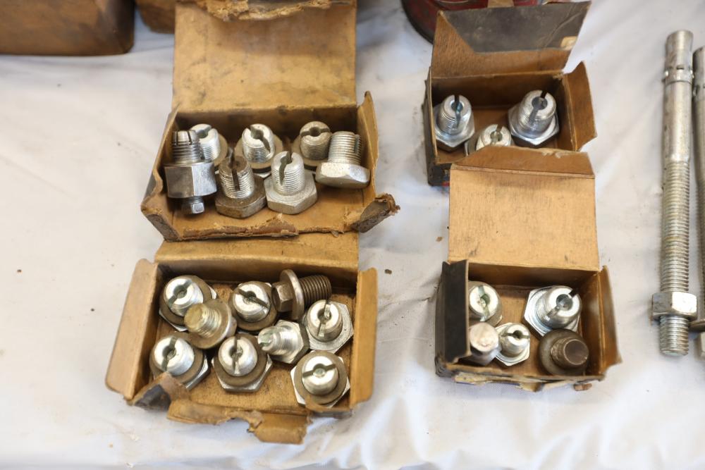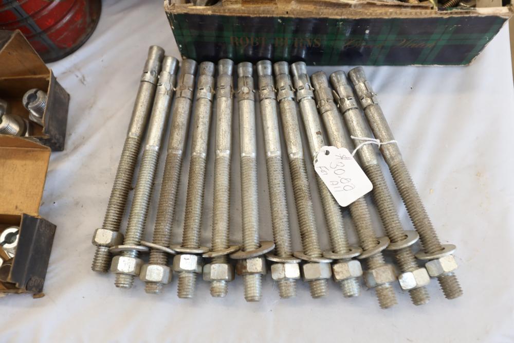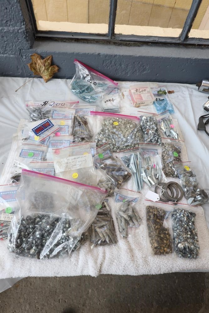 Large assortment of nuts, bolts, hardware, also including Make A Clamp kits, brass fittings, threaded rods, etc.