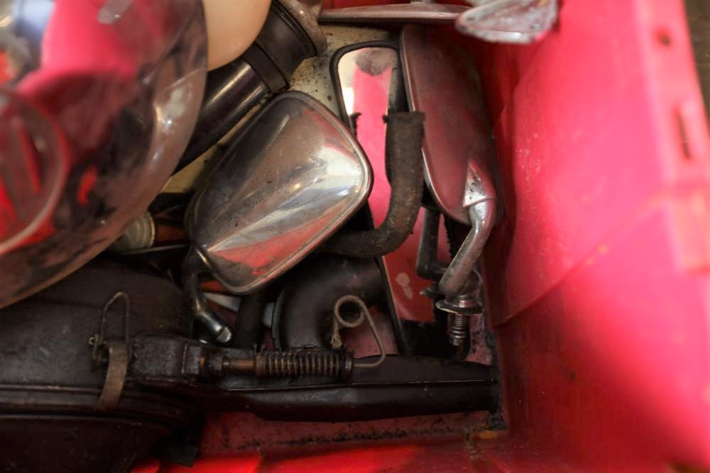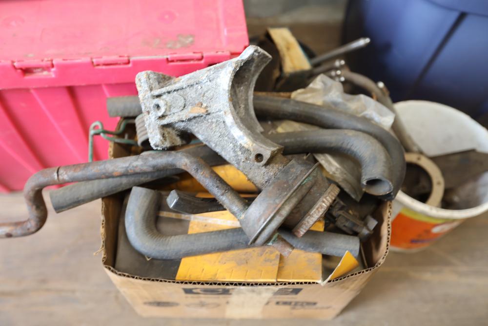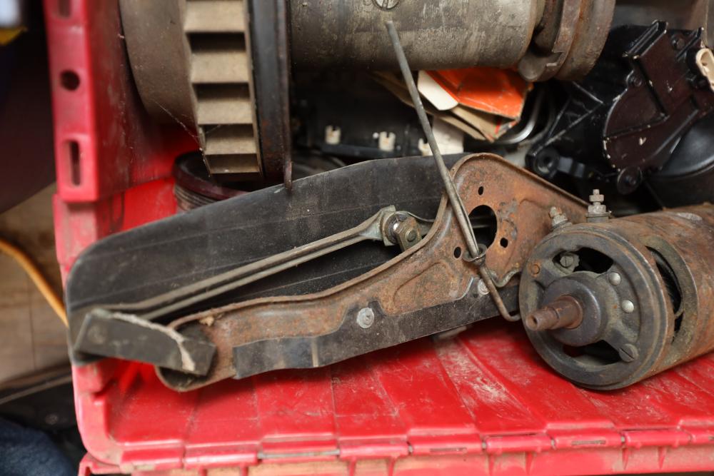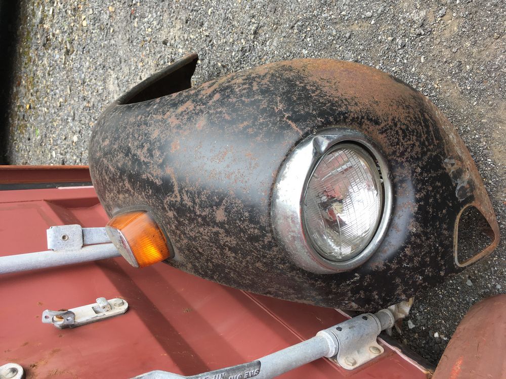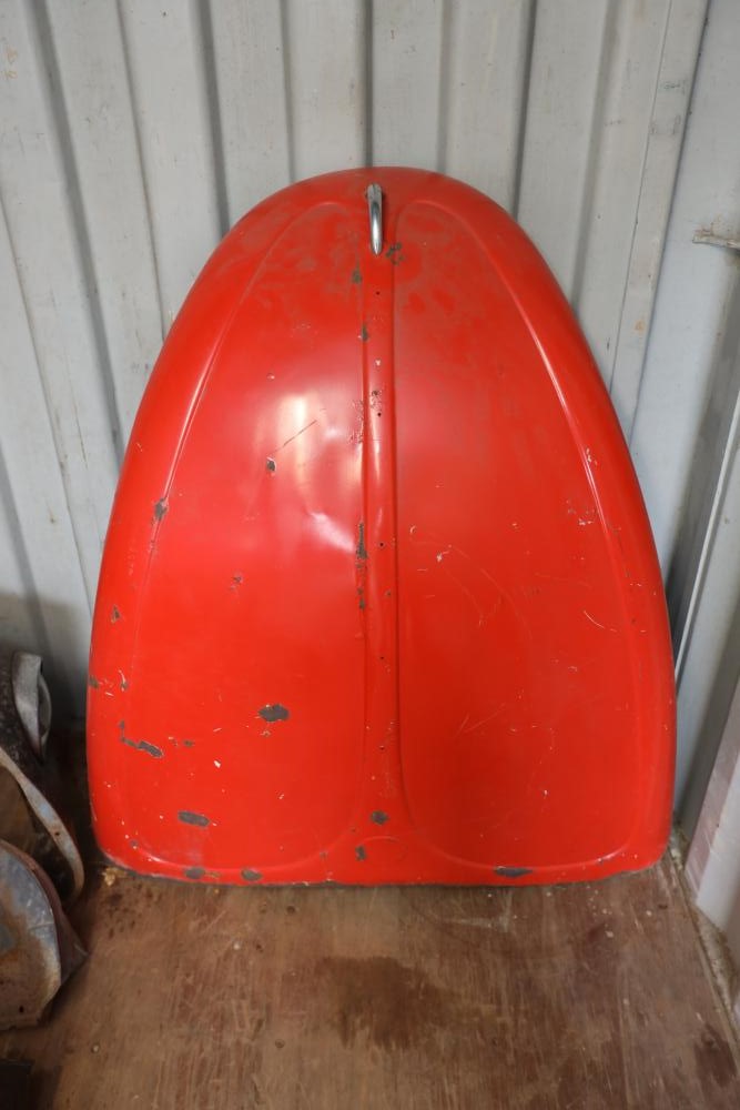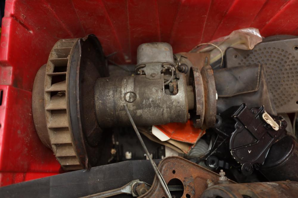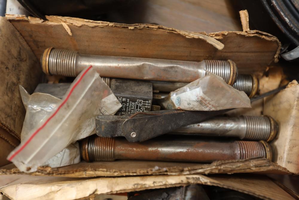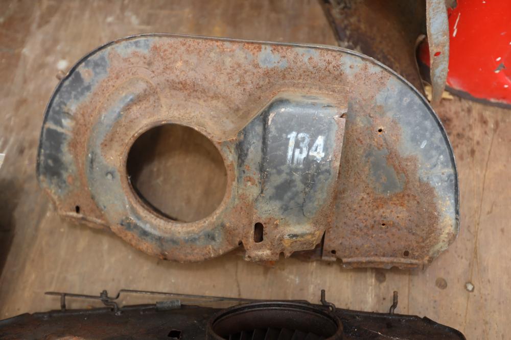 Assorted air cooled Volkswagen new and used car parts including headlights, bezels, numerous tail lights, hood, deck lid, seats, airboxes, heavy duty radial tuned shock absorbers, carburetors, fuse box, fender beading kit, engine stand, Audi/Volkswagen Globe replacement parts manual, many late and older model marker lights, master cylinder, electrical parts, hoses, fuses, engine parts, gaskets, left front fender complete with lights, etc. Buyer must take all.