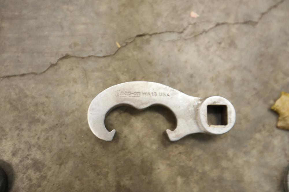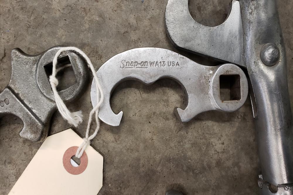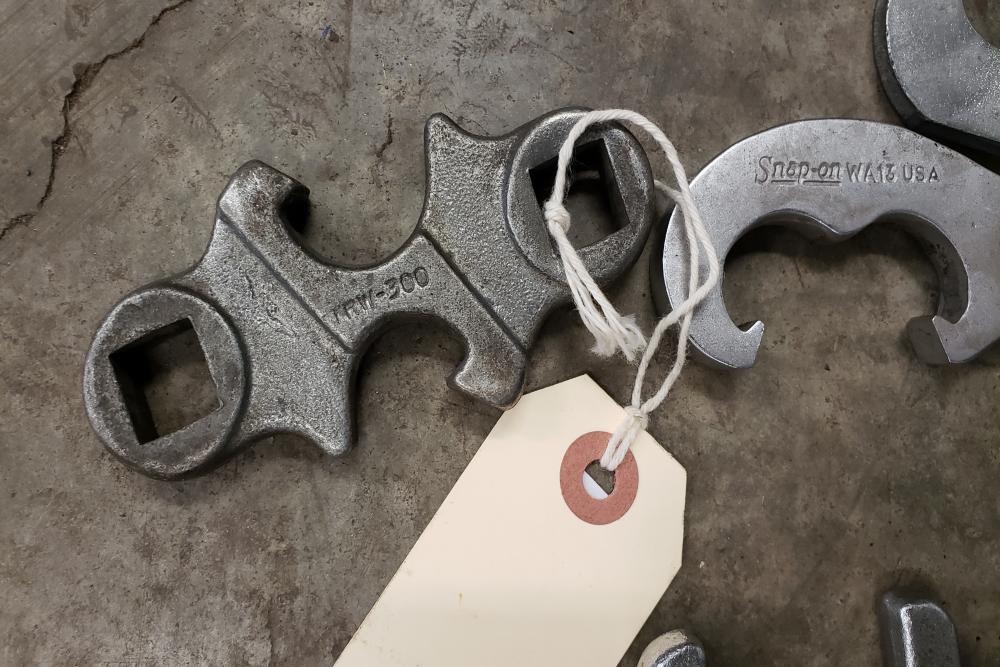 Specialty front end tools for steering and suspension including Snap-on WA13 tie rod adjusting tool, OTC 7017 (A) camber alignment adjuster, TRW-300 tie rod adjustment tool, etc.