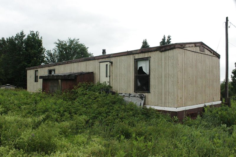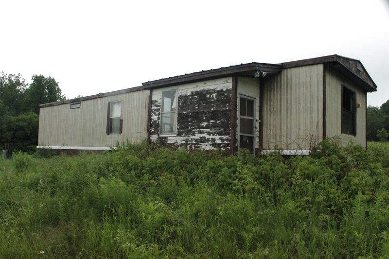Mobile home, attached garage, barn.
