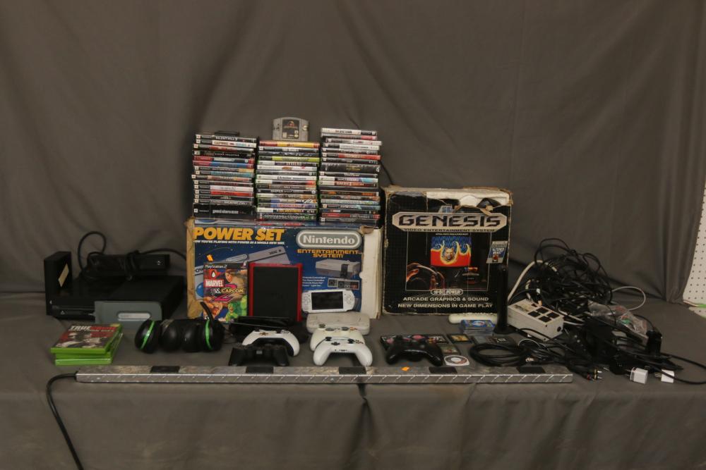 Items include Fender Telecaster electric guitar; Marshall Reverb 12 amp; gaming systems & games: Microsoft Xbox one, Nintendo Entertainment System, Sega Genesis; X Rocker gaming chair; Sharp 43" smart HDTV Roku TV; Fender Starcaster electric guitar; 2000 Apple iMac computer; Pyle acoustic/electric guitar; Panasonic video cameras; Samsung sound bard; Polk audio speakers; Roberts Electronics X-Field reel to reel; Gemini Professional Dj work station; Kenwood speakers; DVI Link DVI HDTV Switchers;' Crate amp Taxi; Samsung 50" TV; Panasonic DVD home theater sound system; Dynascan CB transceiver; Diablo flame machine; Marantz Stereophonic receiver; hundreds of DVDs/CDs/VHS tape; cameras: JVC compact VHS, Olympus Camedia C-7070, Canon AE-1, Regent IF-9 flash and more. Items are located in Pleasant Valley, NY.