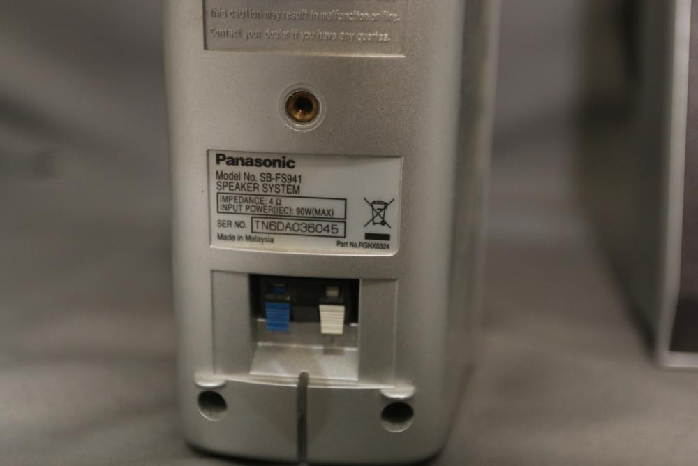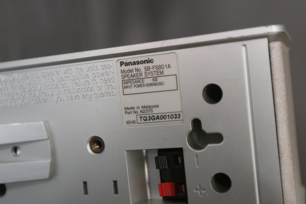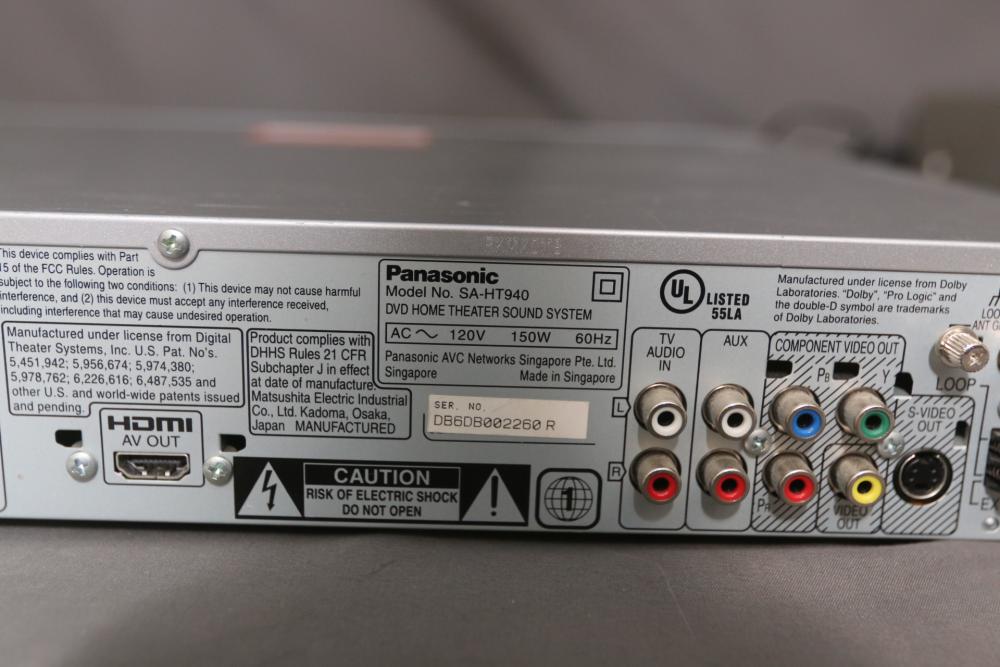 Home audio equipment incl Panasonic DVD home theater sound system model SA-HT940, Sony stereo turntable system model PS-FL1, pair of Panasonic speakers model SB-FS941, Panasonic speaker model SB-FS801A, Panasonic speaker model SB-PC940. Pickup only.