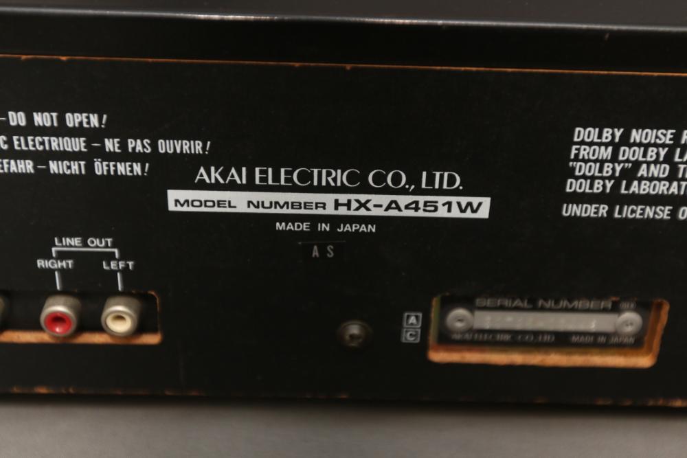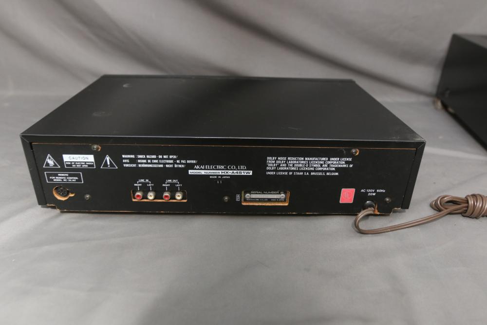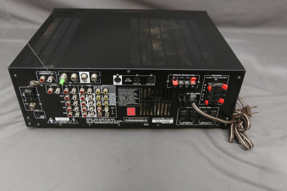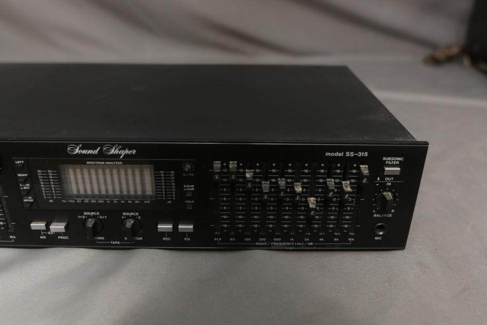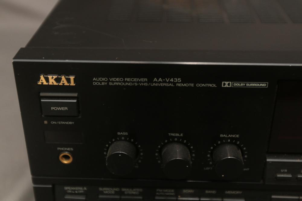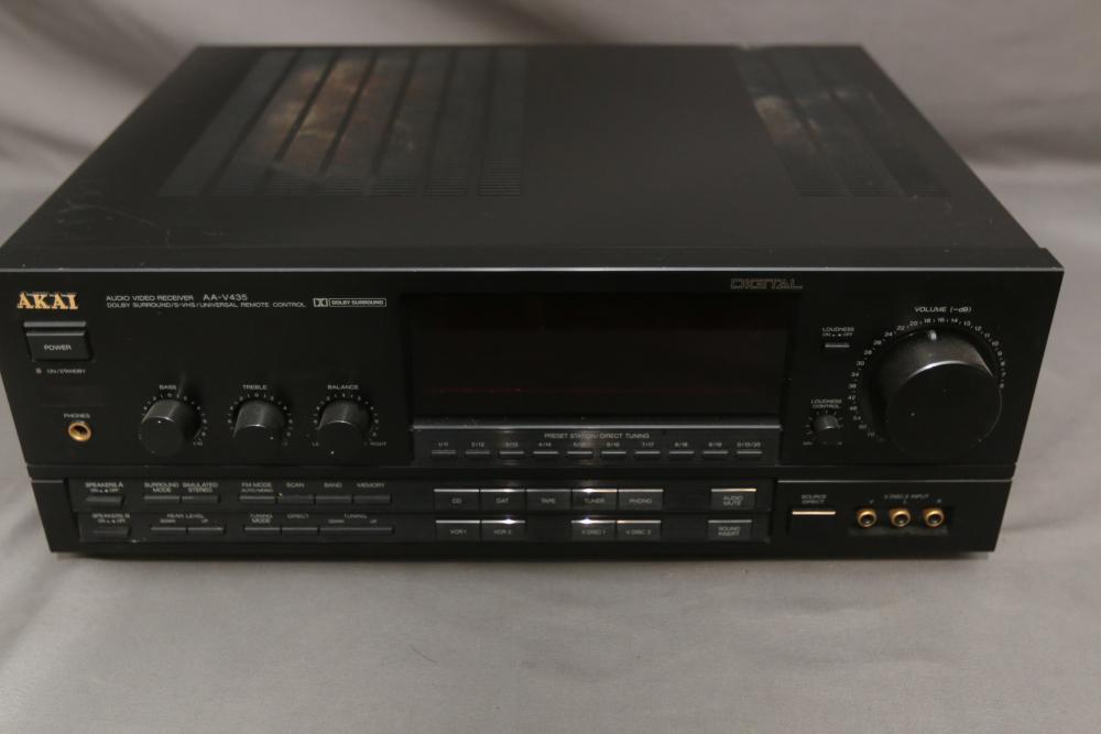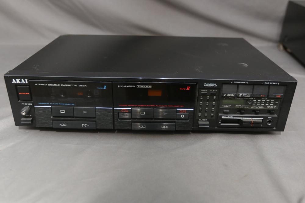 Audio components incl Sound Shaper stereo frequency equalizer model SS-315, AKAI stereo double cassette deck model HX-A451W, AKAI audio video receiver model AA-V435. Pickup only.