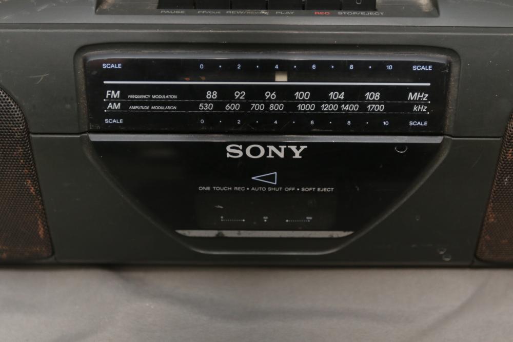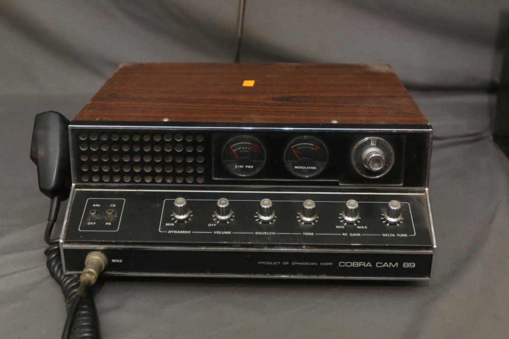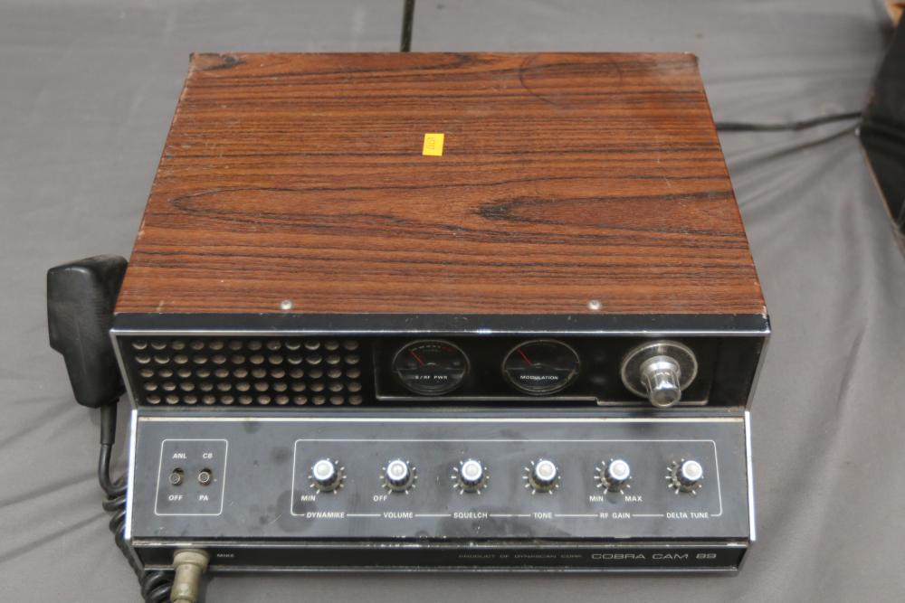 Electronics incl Dynascan CB transceiver model Cobra Cam 89, Sony AM/FM radio with cassette player, Panasonic Sim Line tape player, Sony color T model FDT-53X5, also incl Diablo flame machine in original box model D-100. Pickup only.