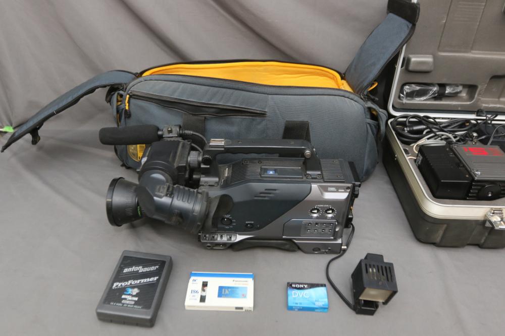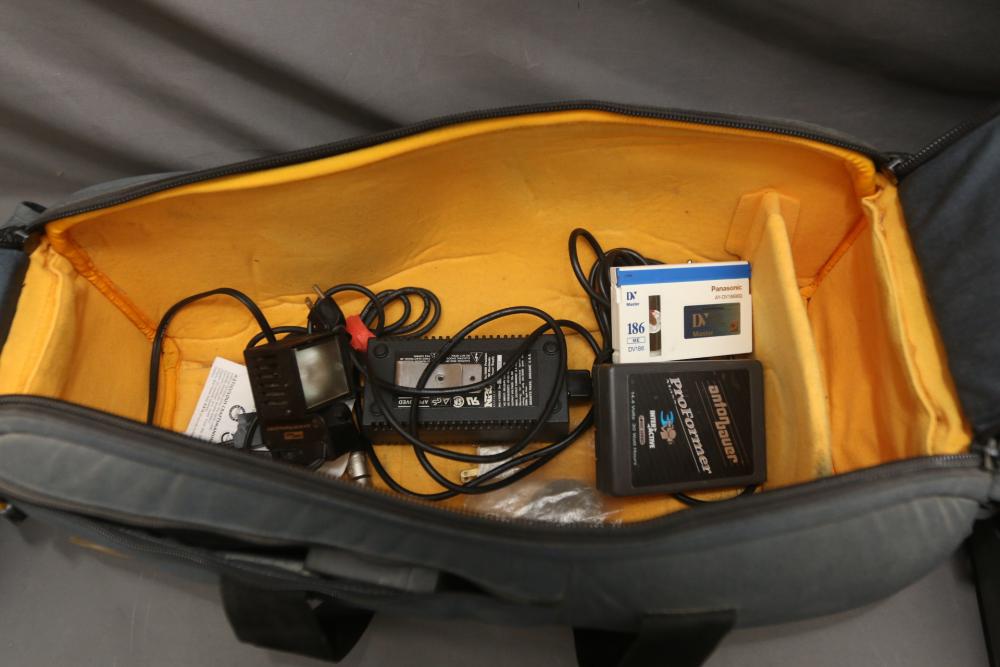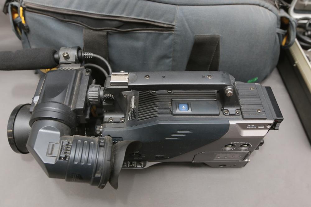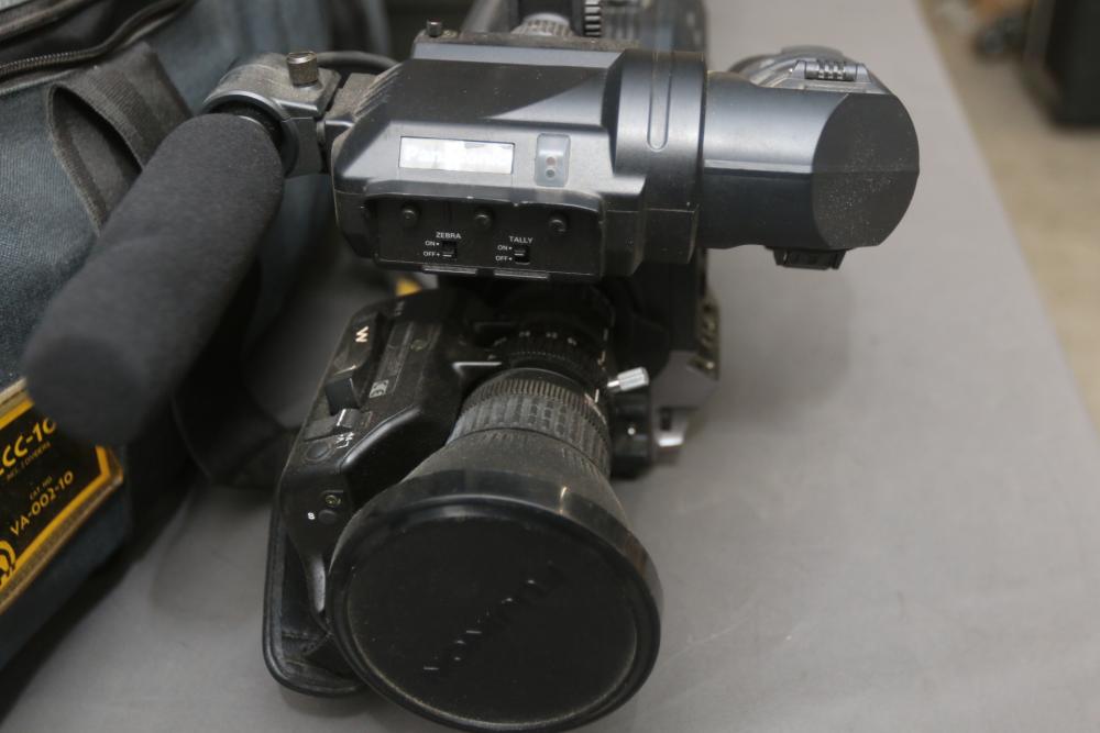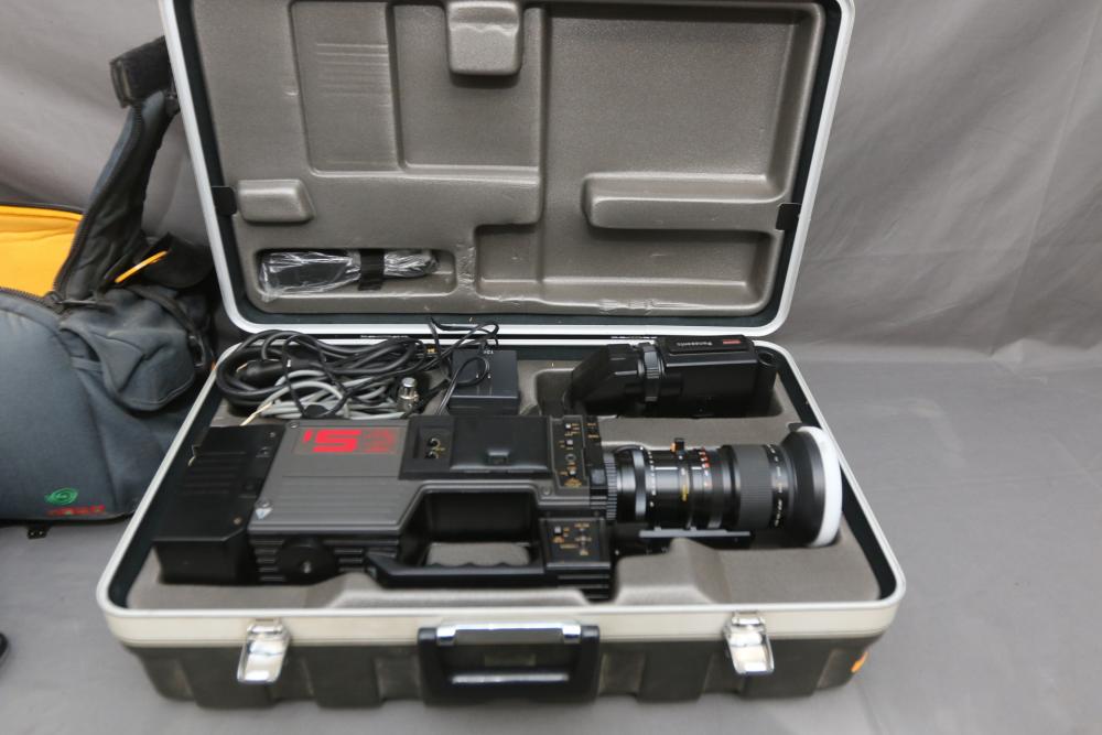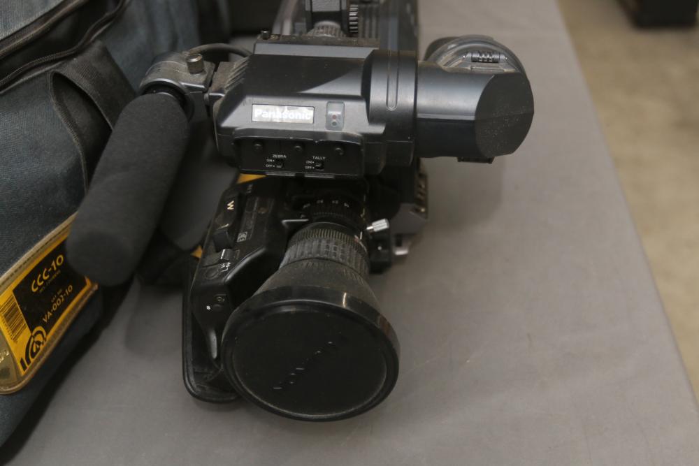 Two Panasonic video cameras models incl AG-DVC200, and WV-6000, one in soft carrying bag , other in hard case. Pickup only.