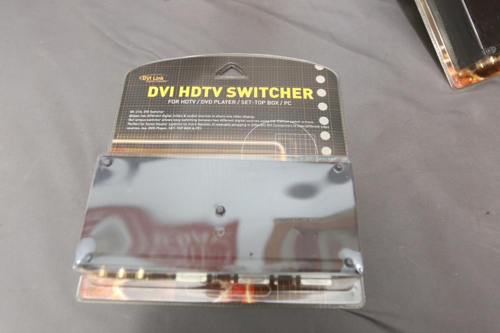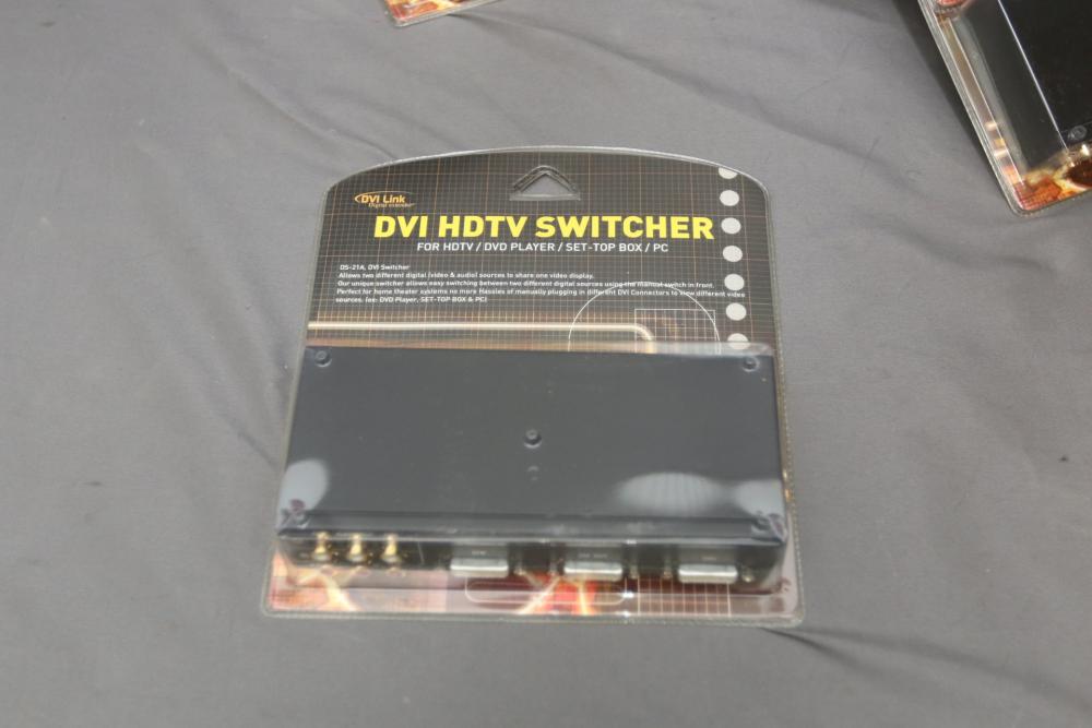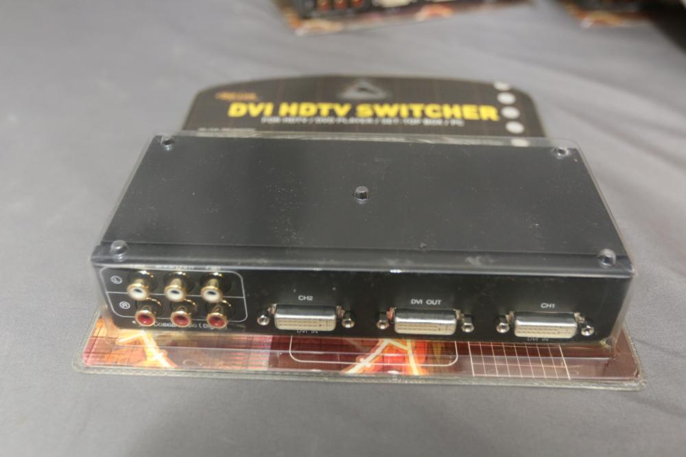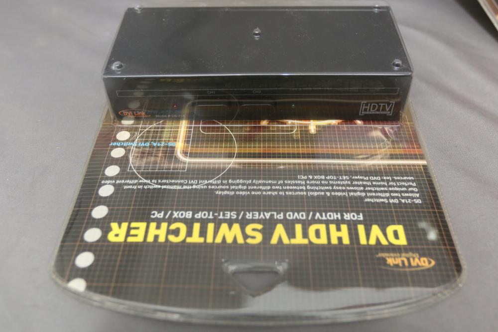 Case of New In Box DVI Link DVI HDTV Switchers for HDTV/DVD player/set-top box/pc, model DS-21A, all in original packaging. Box opened for photography purposes.