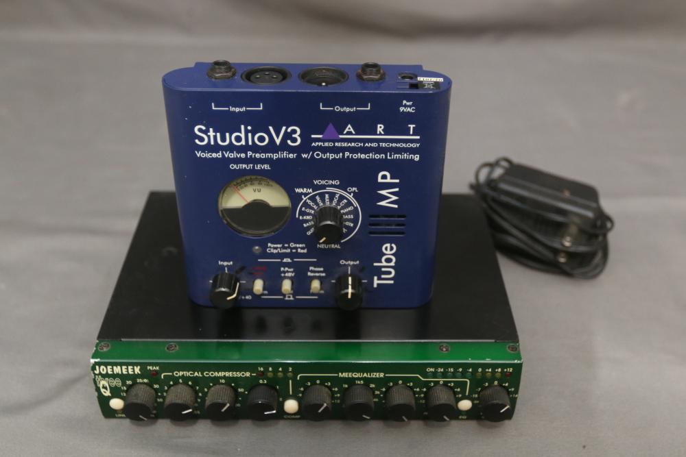 Joemeek Three Q preamp, 12V AC power, 48V Phantom power, also incl Studio V3 ART Tube MP, voiced valve preamplifier w/output protection limiting.