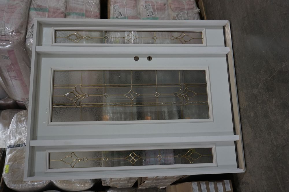 Decorative Entrance Door 36" x 80" With 2 Side Lights RH. Prehung, Brass 22" x 36" Glass, Old Man and The Sea Pattern, 4 9/16" Jamb, Actual Size 63 3/8" x 81 1/2". Grade: A *Any manufacturer warranties are NOT VALID with any purchase at our Auctions unless stated otherwise.. Weight: 190. Sold by: Door. Sold as: Quantity x Price.