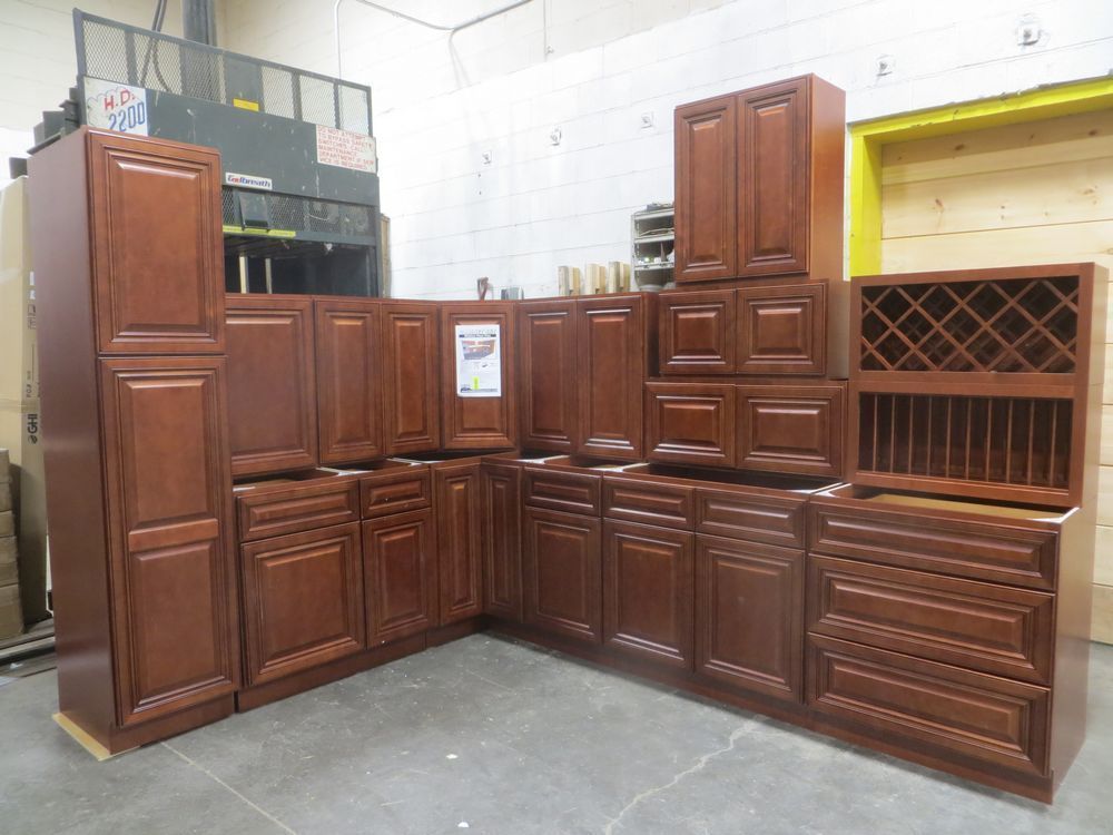 Grand Reserve Cherry Kitchen Cabinet Set 10' x 15'. Deluxe Layout. 30" Walls. ASSEMBLY OPTION IS NOT AVAILABLE FOR THIS SET. By Feather Lodge, ADDITIONAL CABINETS ARE UNAVAILABLE BECAUSE THIS PRODUCT LINE IS DISCONTINUED. -3/4” Solid Birch Face Frame -Raised Panel Mitered Door -Full Overlay -1/2” Plywood Box Construction -3/4” Plywood Shelves -Matching Interior/Exterior -6-Way Adjustable Concealed Soft Close Door Hinges -5 Piece Drawer Front -5/8” Thick Solid Wood Dovetail Drawer Box -Undermount Full Extension Soft Close Drawer Glides. Enclosed in each cabinet set will be a Build Sheet which lists the individual cabinets in each set. As the cabinets are palletized each cabinet will be checked off and signed by our staff member to ensure that the set is complete at the time of pick-up. Please keep this Build Sheet on hand because it will be required if there is an issue with your cabinet set. Cabinet issues will not be addressed without this build sheet. *Any manufacturer warranties are NOT VALID with any purchase at our Auctions unless stated otherwise.*Any manufacturer warranties are NOT VALID with any purchase at our Auctions unless stated otherwise.. Weight: x. Sold by: Set. Sold as: Quantity x Price.