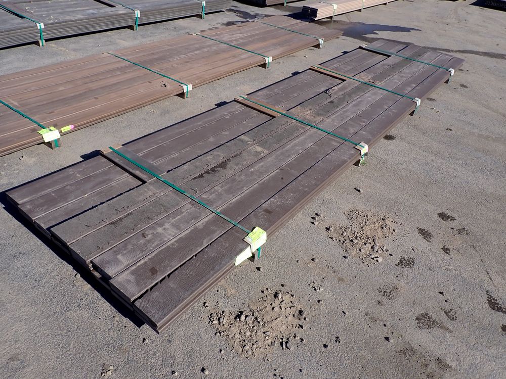Brown Composite Decking 1" x 6" x 16'. PVC Cap, Grooved on one side, Square. Grade: 2nd. *Any manufacturer warranties are NOT VALID with any purchase at our Auctions unless stated otherwise.. Weight: 1400. Sold by: Linear Foot. Sold as: Quantity x Price.