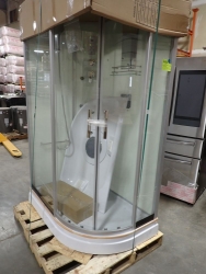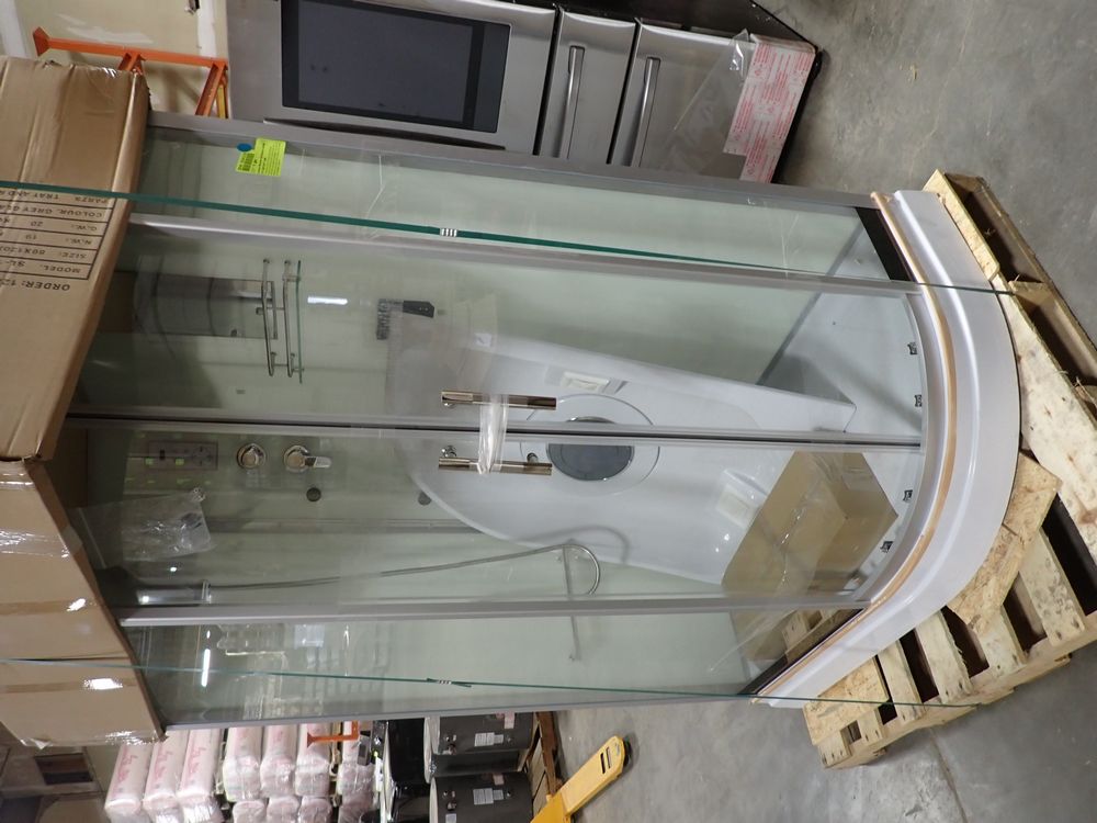 Luxury Shower Enclosure Jetted 31" x 46" x 81" LHD. CD. White Walls, Center Drain, 3 Massage Jets, Radio, LED Lights, Soap & Shampoo Dispensers & Shelf, Overhead & Adjustable Head & Mirror. Grade: A. *Any manufacturer warranties are NOT VALID with any purchase at our Auctions unless stated otherwise.. Weight: 260. Sold by: Piece. Sold as: Quantity x Price.