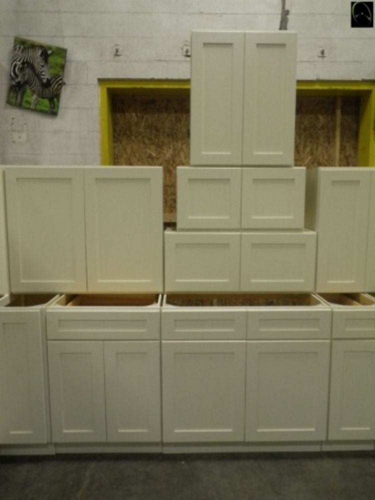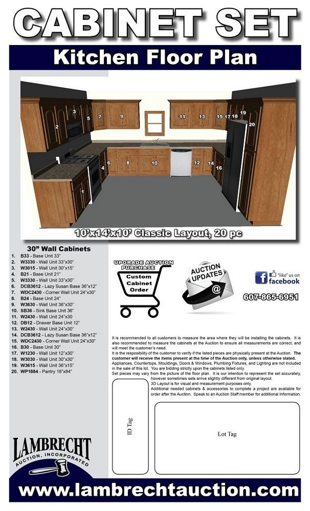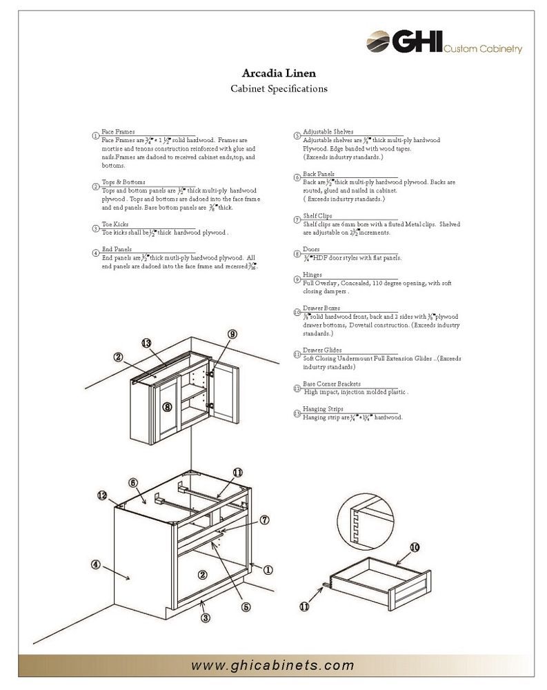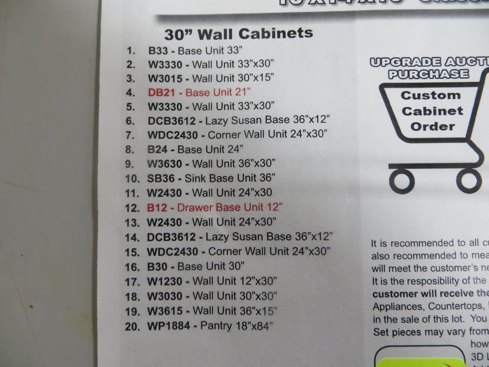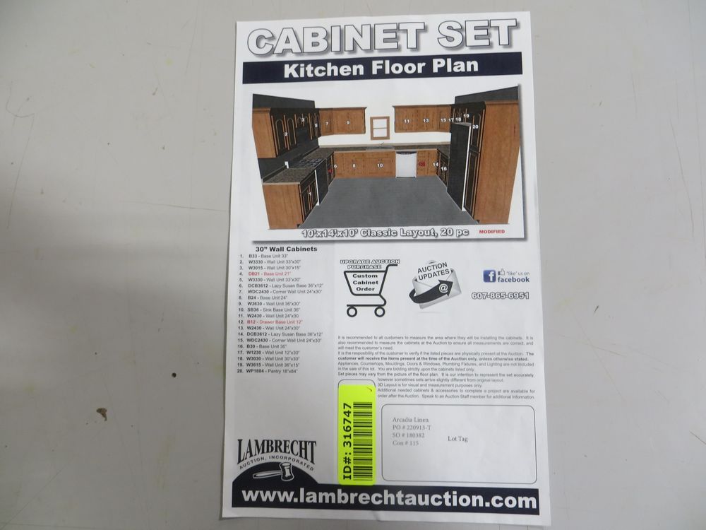 Arcadia Linen Kitchen Cabinet Set 10'x14'x10'. Modified Classic Layout. 30" Walls. ASSEMBLY OPTION IS NOT AVAILABLE FOR THIS SET. By GHI, Additional pieces may be available for order to the high bidder. Additional cabinets ship boxed, ready to assemble. -3/4” Solid Wood Face Frame -High Density Fiberboard Shaker Style Door and Drawer Front -1/2” Plywood Box Construction -5/8” Plywood Shelves -Full Overlay Doors and Drawer Fronts -Solid Wood Dovetail Drawer box -Soft Close Full Extension Drawer Gliders -Soft Close Doors -6-Way Adjustable Concealed Hinges -Additional Wall Cabinets Available in the Following Sizes; 30”, 36”, and 42”; if you would like a different size that what this cabinet is listed as please call our office at 607-865-6951 for a quote. Enclosed in each cabinet set will be a Build Sheet which lists the individual cabinets in each set. As the cabinets are palletized each cabinet will be checked off and signed by our staff member to ensure that the set is complete at the time of pick-up. Please keep this Build Sheet on hand because it will be required if there is an issue with your cabinet set. Cabinet issues will not be addressed without this build sheet. *Any manufacturer warranties are NOT VALID with any purchase at our Auctions unless stated otherwise.. Weight: x. Sold by: Set. Sold as: Quantity x Price.