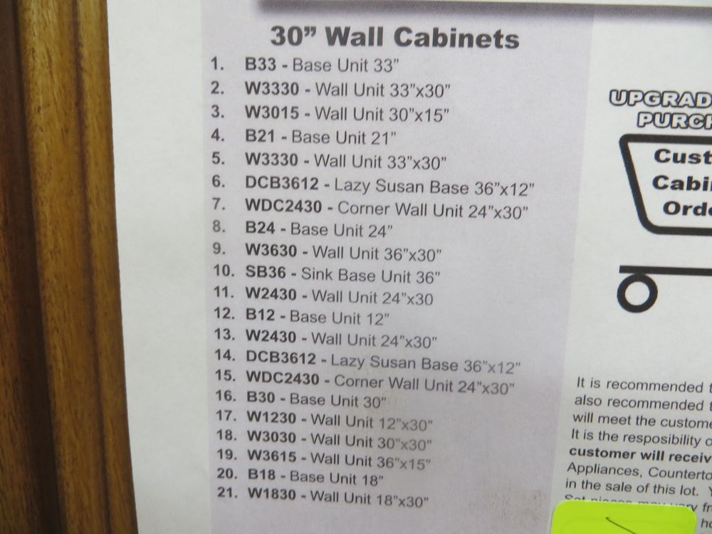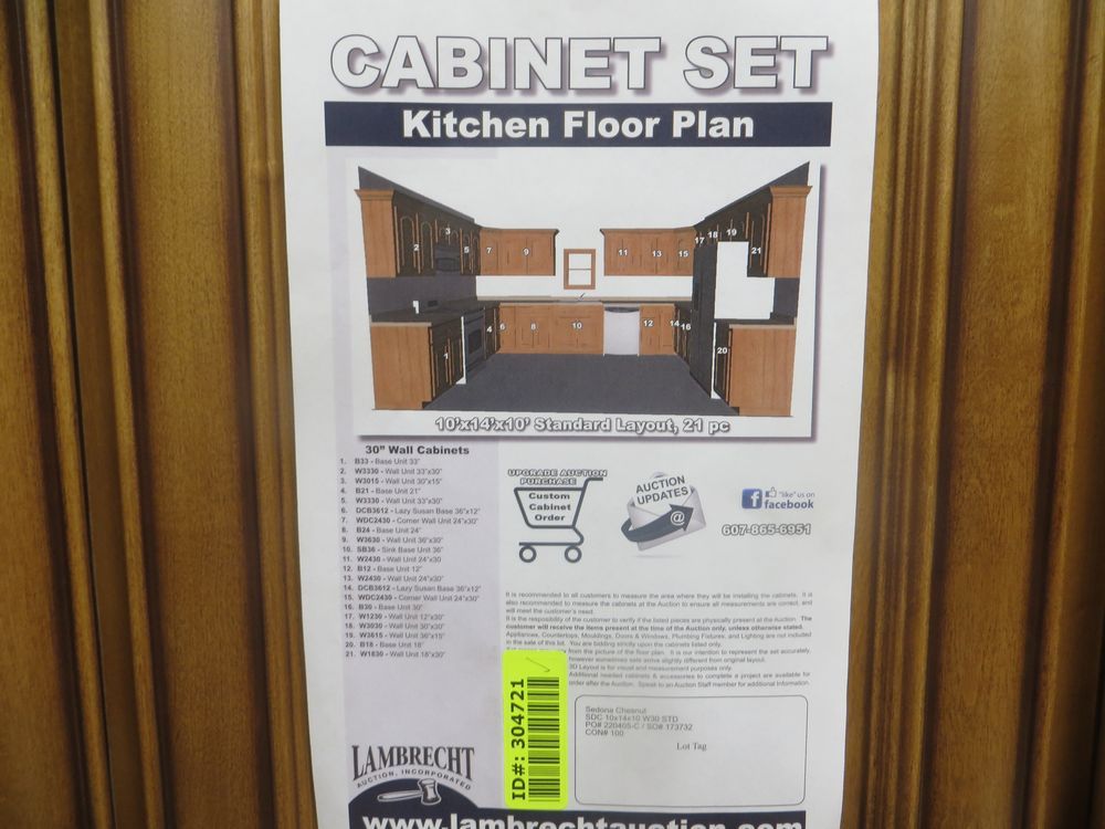 Sedona Chesnutt Kitchen Cabinet Set 10' x 14' x 10'. Standard Layout. 30" Walls. ASSEMBLY OPTION IS NOT AVAILABLE FOR THIS SET By GHI, Additional pieces may be available for order to the high bidder. Additional cabinets ship boxed, ready to assemble. -All wood Construction -3/4” Solid Maple Face Frame -Solid Maple Raised Panel Doors and Drawer Fronts -1/2” Plywood Box Construction with Wood Veneer Interiors and Exteriors -3/4” plywood Shelves -Full overlay Doors and Drawer Fronts -Solid Wood Dovetail Drawer Box -Soft Close Full Extension Drawer Gliders -Hand Rubbed Glaze -6-Way Adjustable Concealed Hinges -Soft Close Doors -Additional Wall Cabinets Available in the Following Sizes; 30”, 36”, and 42”; if you would like a different size that what this cabinet is listed as please call our office at 607-865-6951 for a quote. Enclosed in each cabinet set will be a Build Sheet which lists the individual cabinets in each set. As the cabinets are palletized each cabinet will be checked off and signed by our staff member to ensure that the set is complete at the time of pick-up. Please keep this Build Sheet on hand because it will be required if there is an issue with your cabinet set. Cabinet issues will not be addressed without this build sheet. *Any manufacturer warranties are NOT VALID with any purchase at our Auctions unless stated otherwise.. Weight: X. Sold by: Set. Sold as: Quantity x Price.