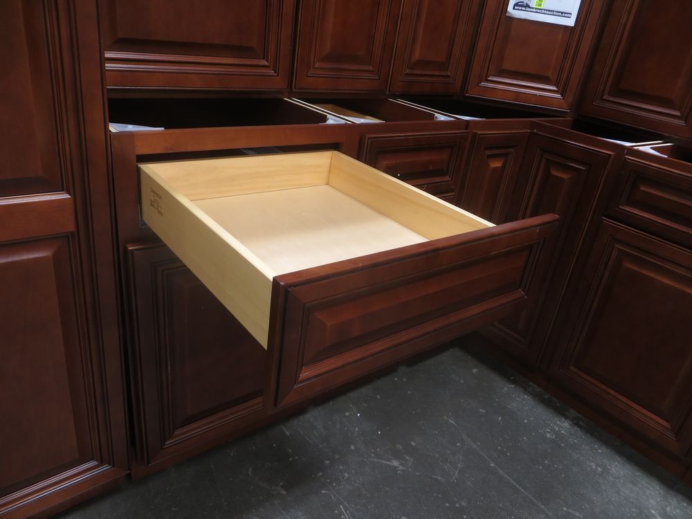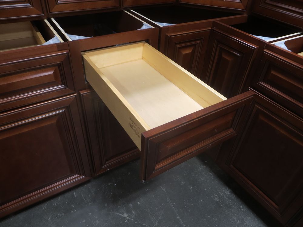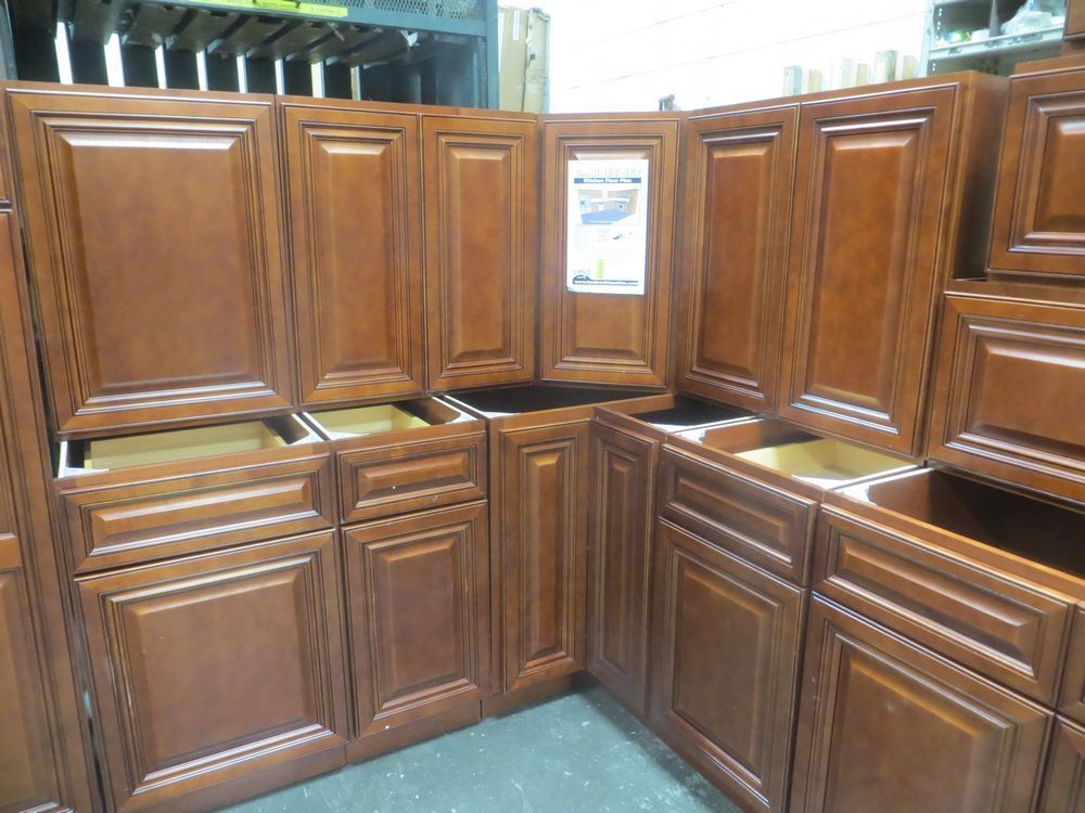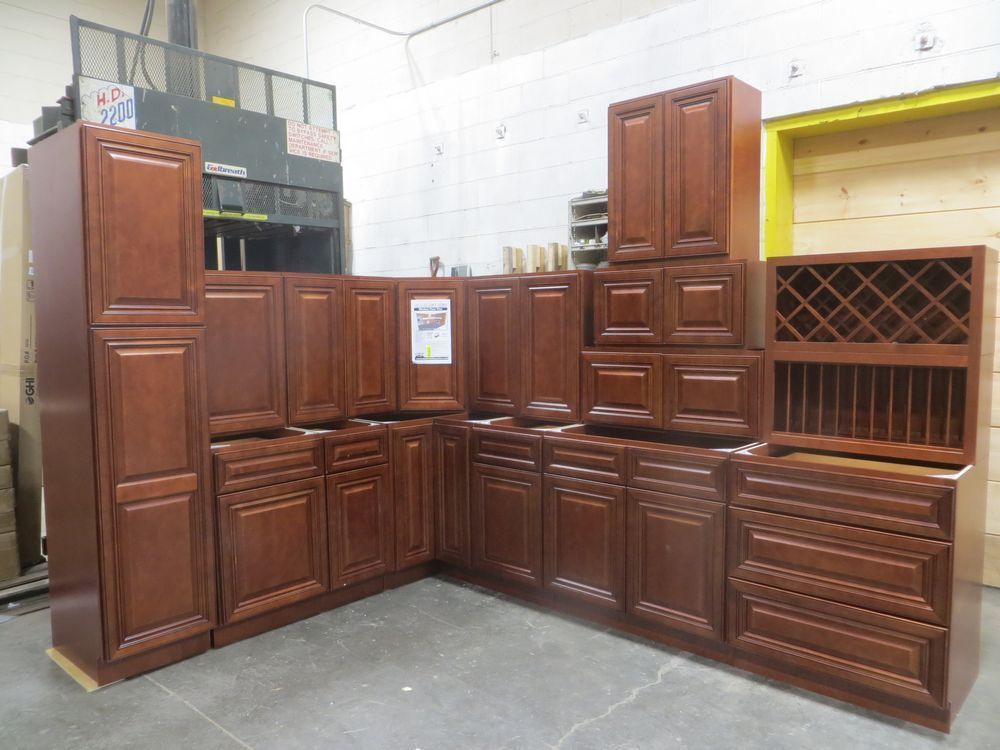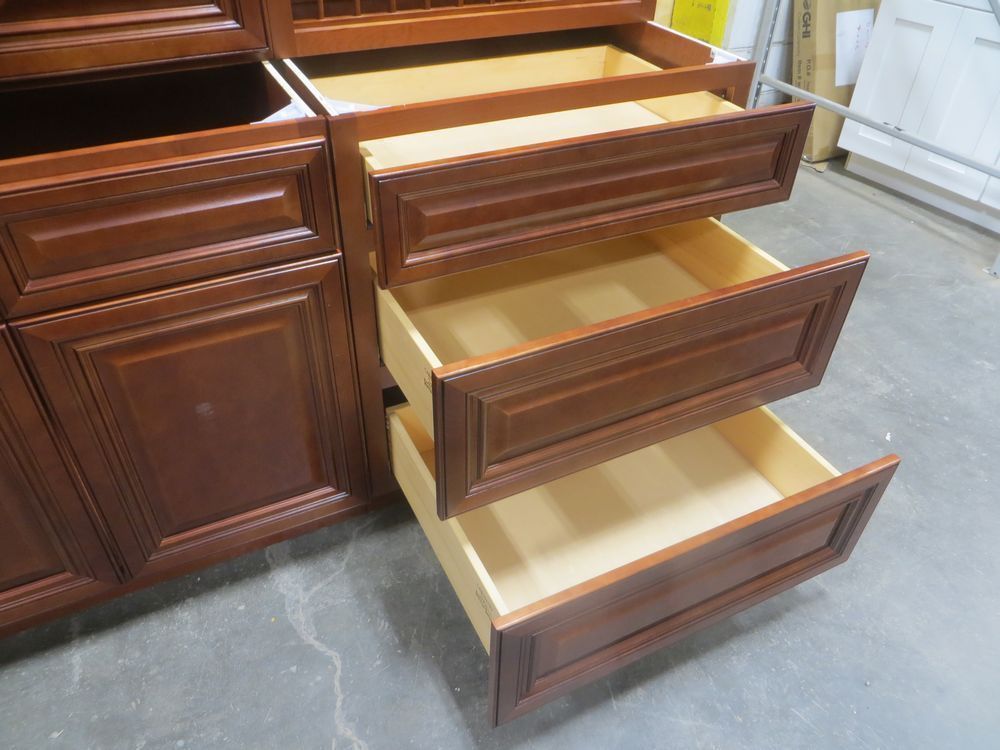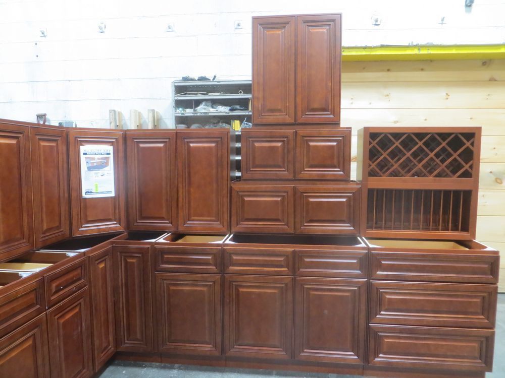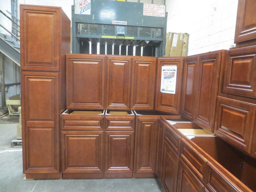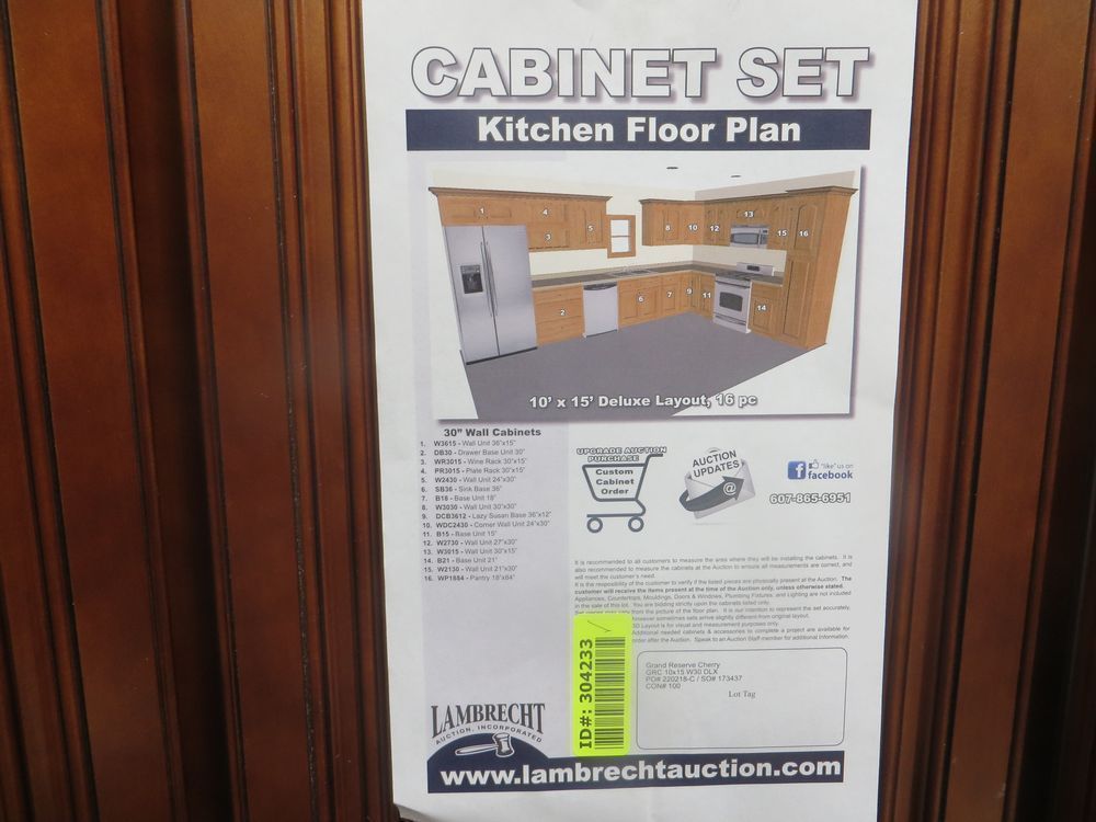 Grand Reserve Cherry Kitchen Cabinet Set 10' x 15'. Deluxe Layout. 30" Walls. ASSEMBLY OPTION IS NOT AVAILABLE FOR THIS SET. By Feather Lodge, ADDITIONAL CABINETS ARE UNAVAILABLE BECAUSE THIS PRODUCT LINE IS DISCONTINUED. -3/4” Solid Birch Face Frame -Raised Panel Mitered Door -Full Overlay -1/2” Plywood Box Construction -3/4” Plywood Shelves -Matching Interior/Exterior -6-Way Adjustable Concealed Soft Close Door Hinges -5 Piece Drawer Front -5/8” Thick Solid Wood Dovetail Drawer Box -Undermount Full Extension Soft Close Drawer Glides. Enclosed in each cabinet set will be a Build Sheet which lists the individual cabinets in each set. As the cabinets are palletized each cabinet will be checked off and signed by our staff member to ensure that the set is complete at the time of pick-up. Please keep this Build Sheet on hand because it will be required if there is an issue with your cabinet set. Cabinet issues will not be addressed without this build sheet. *Any manufacturer warranties are NOT VALID with any purchase at our Auctions unless stated otherwise.*Any manufacturer warranties are NOT VALID with any purchase at our Auctions unless stated otherwise.. Weight: x. Sold by: Set. Sold as: Quantity x Price.