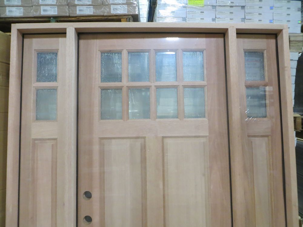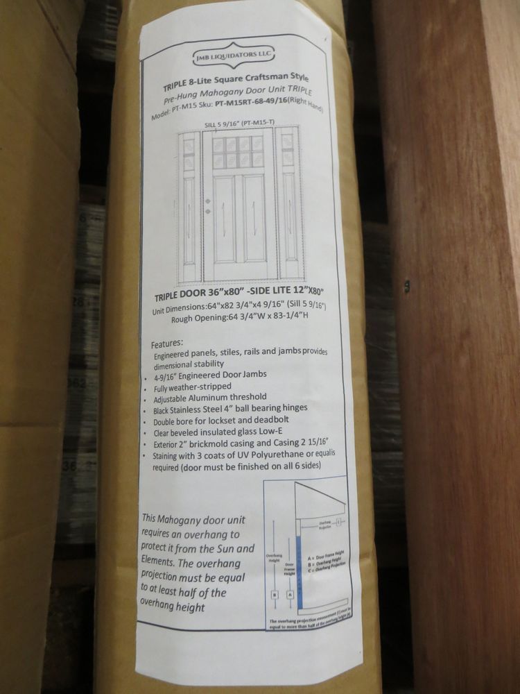 Triple 8-Lite Square Craftsman Mahogany Door 36"x80" Side Lite 12"x80" RH. Pre-Hung Unit Dimensions: 64"x82" 3/4x4 9/16" (Sill 5 9/16"). Rough Opening: 64 3/4" W x 83-1/4"H *Any manufacturer warranties are NOT VALID with any purchase at our Auctions unless stated otherwise.. Weight: . Sold by: Door. Sold as: Quantity x Price.