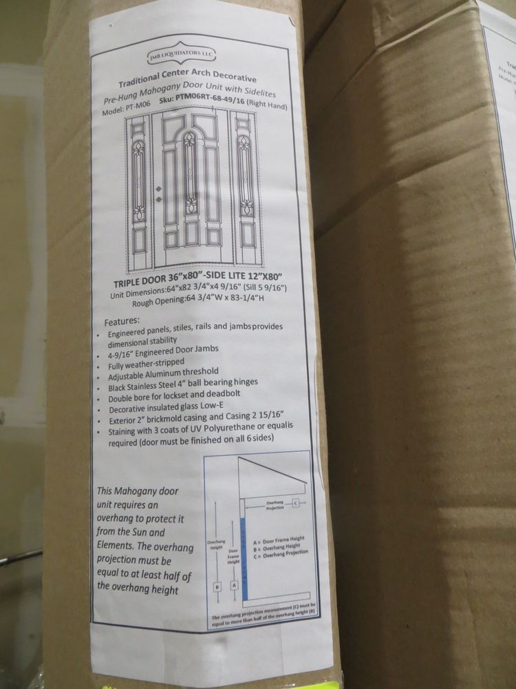 Traditional Center Arch Decorative Mahogany Door 36"x80" Side Lite 12"x80" RH. Pre-Hung Unit Dimensions: 64"x82" 3/4x4 9/16" (Sill 5 9/16"). Rough Opening: 64 3/4" W x 83-1/4"H *Any manufacturer warranties are NOT VALID with any purchase at our Auctions unless stated otherwise.. Weight: x. Sold by: Door. Sold as: Quantity x Price.