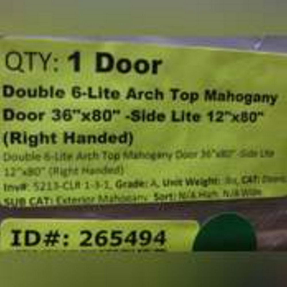 Double 6-Lite Mahogany Arch Top Mahogany Door 36"x80" RH. Pre-Hung Unit Dimensions: 74 1/4"x82 3/4"x4 9/16" (Sill 5 9/16"). Rough Opening 75 3/4"W x 83-1/4"H *Any manufacturer warranties are NOT VALID with any purchase at our Auctions unless stated otherwise.. Weight: . Sold by: Door. Sold as: Quantity x Price.