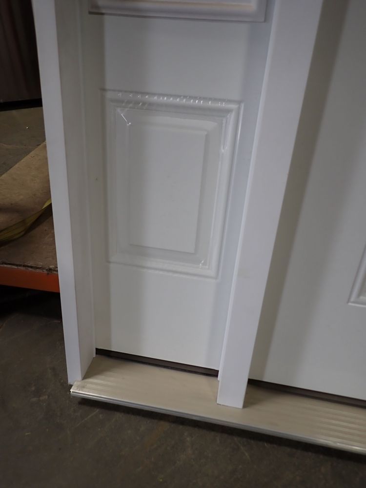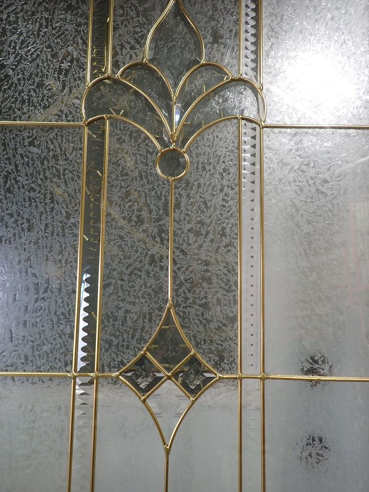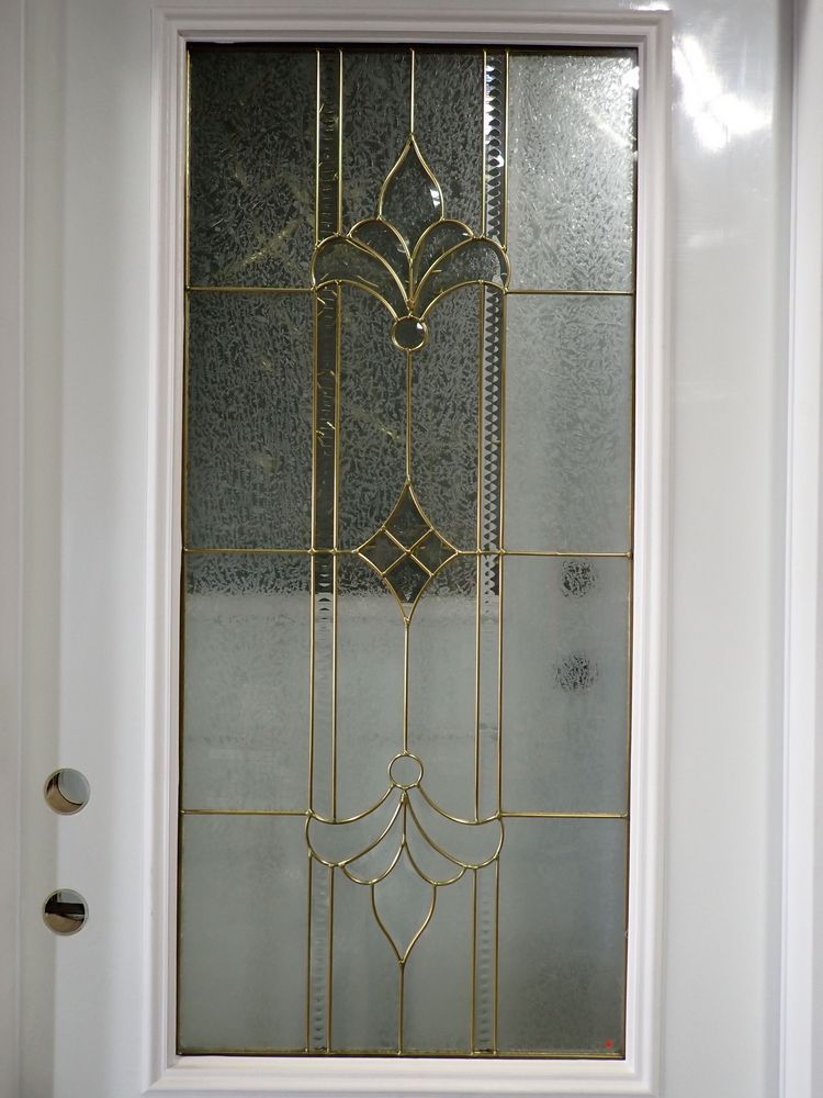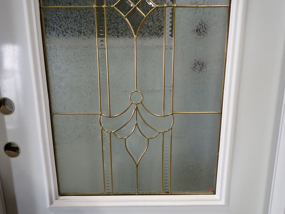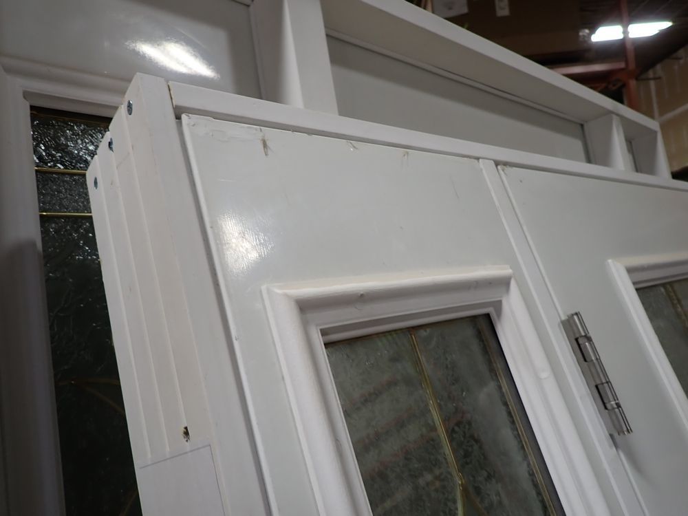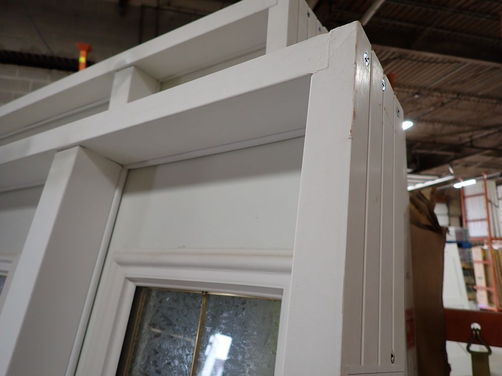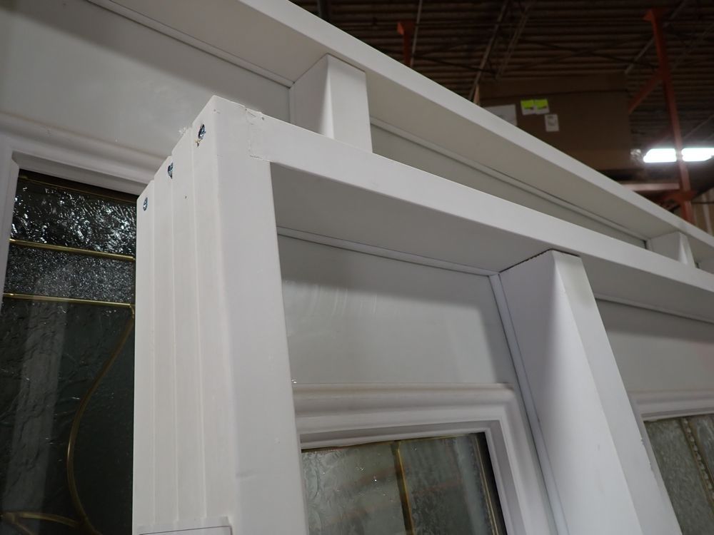 Decorative Entrance Door 36"x80" With 2 Side Lights RH. Prehung, Brass 22x48 Glass, Romeo & Juliet Pattern, 4 9/16 Jamb, Actual 63 3/8 x 81 1/2. Grade: A *Any manufacturer warranties are NOT VALID with any purchase at our Auctions unless stated otherwise.. Weight: 190 lbs.. Sold by: Door. Sold as: Quantity x Price.