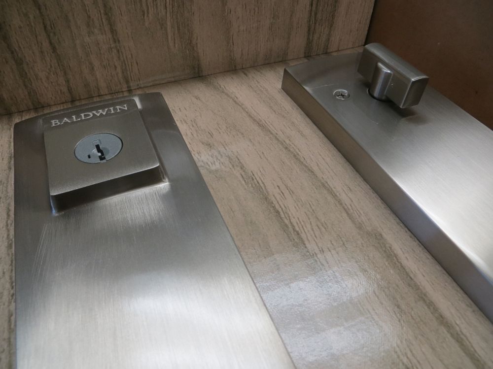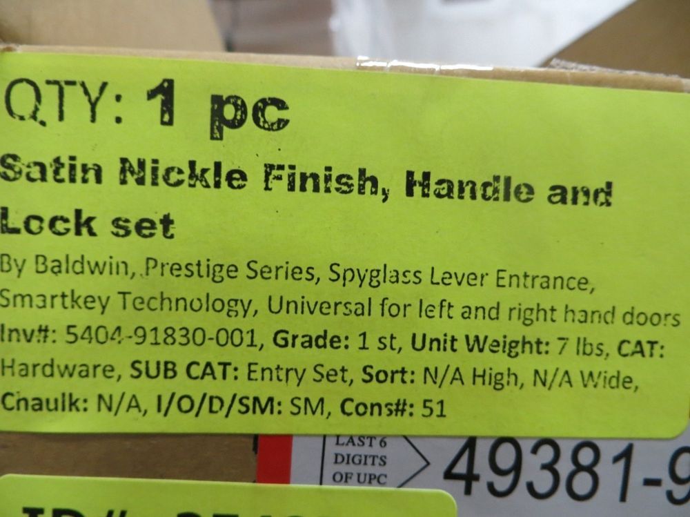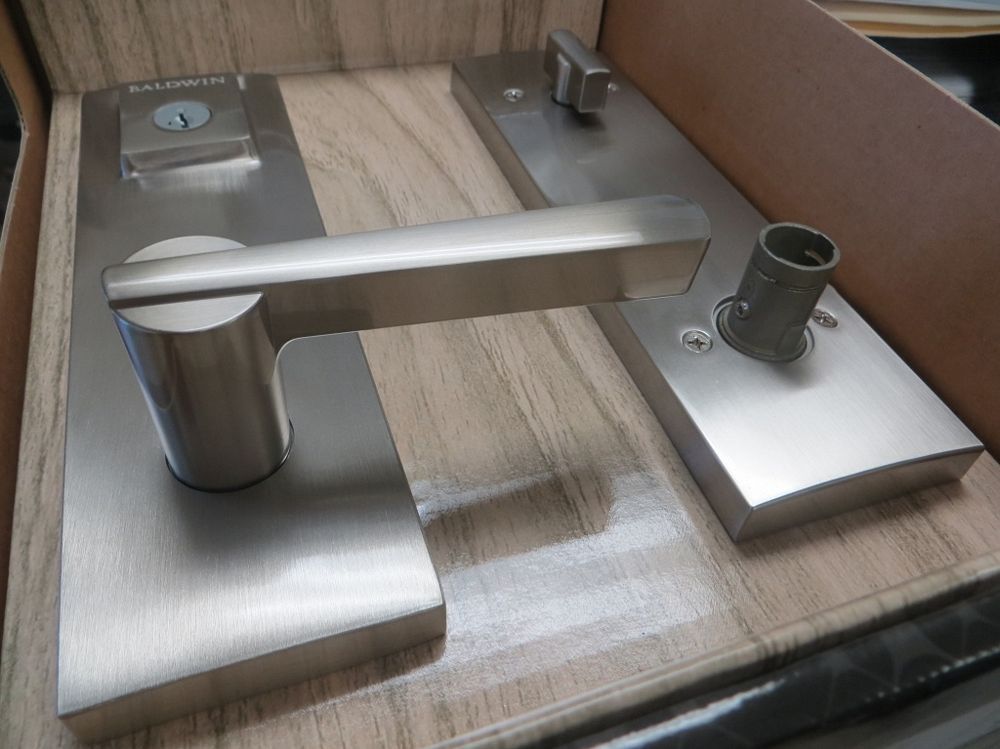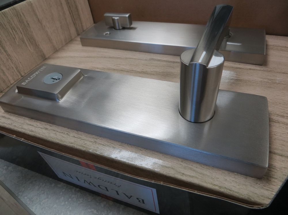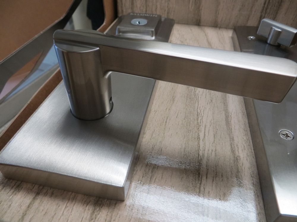 Satin Nickle Finish, Handle and Lock set. By Baldwin, Prestige Series, Spyglass Lever Entrance, Smartkey Technology, Universal For Left And Right Hand Doors. Grade: 1st. Weight: x. Sold by: Piece. Sold as: Quantity x Price.