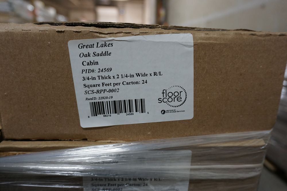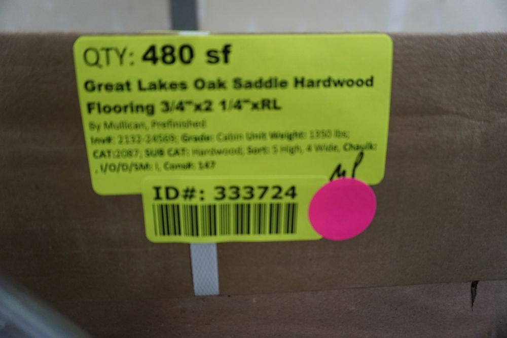 Great Lakes Oak Saddle Hardwood Flooring 3/4x2" 1/4"xRL. By Mullican, Prefinished. Grade: Cabin, 20 Boxes, 24 SF Per Box. *Any manufacturer warranties are NOT VALID with any purchase at our Auctions unless stated otherwise.. Weight: 1350. Sold by: Square Foot. Sold as: Quantity x Price.