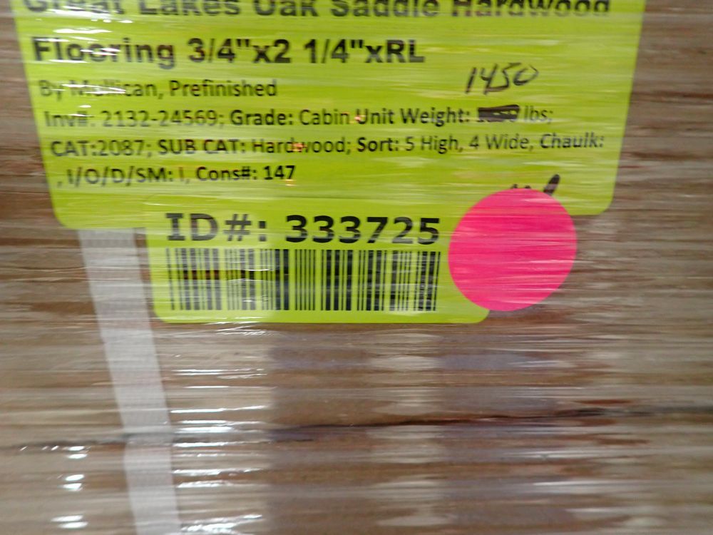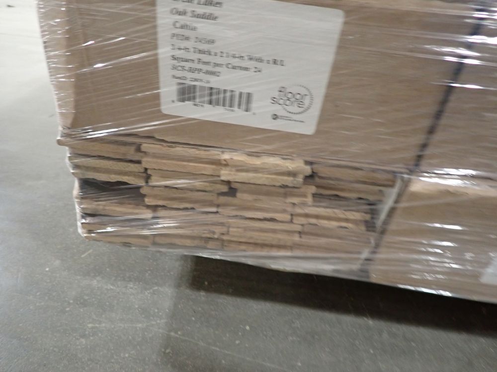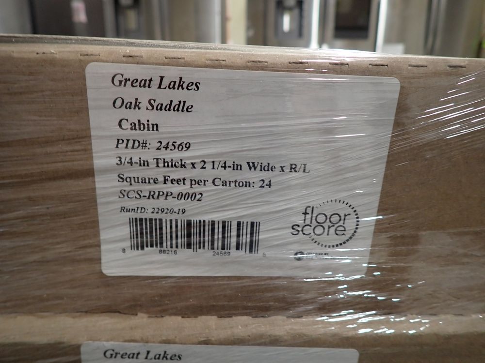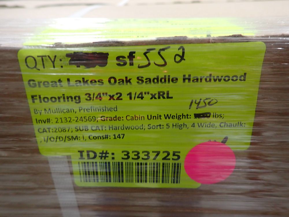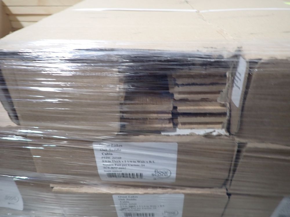 Great Lakes Oak Saddle Hardwood Flooring 3/4x2" 1/4"xRL. By Mullican, Prefinished. Grade: Cabin, 23 Boxes, 24 SF Per Box. *Any manufacturer warranties are NOT VALID with any purchase at our Auctions unless stated otherwise.. Weight: 1450. Sold by: Square Foot. Sold as: Quantity x Price.