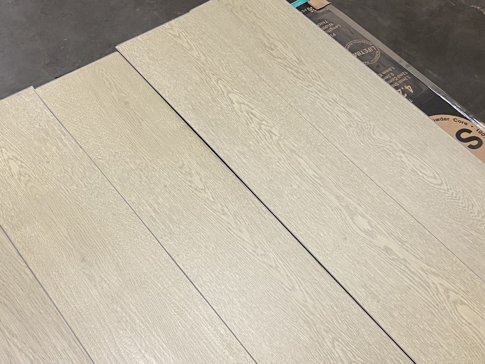 America Oak Bermuda Sand Vinyl Flooring 4.2mm x 7" x 48". SPC Rigid Core, Drop-Lock. 15 Boxes, 28.36 SF Per Box. Grade: 1st. SPC (Stone Plastic Composite) rigid flooring is set apart from other types of vinyl flooring by its uniquely resilient core layer. The core is made from a combination of natural limestone powder, polyvinyl chloride, and stabilizers. This provides an incredibly stable base for each flooring plank. *Any manufacturer warranties are NOT VALID with any purchase at our Auctions unless stated otherwise.. Weight: 670. Sold by: Square Foot. Sold as: Quantity x Price.