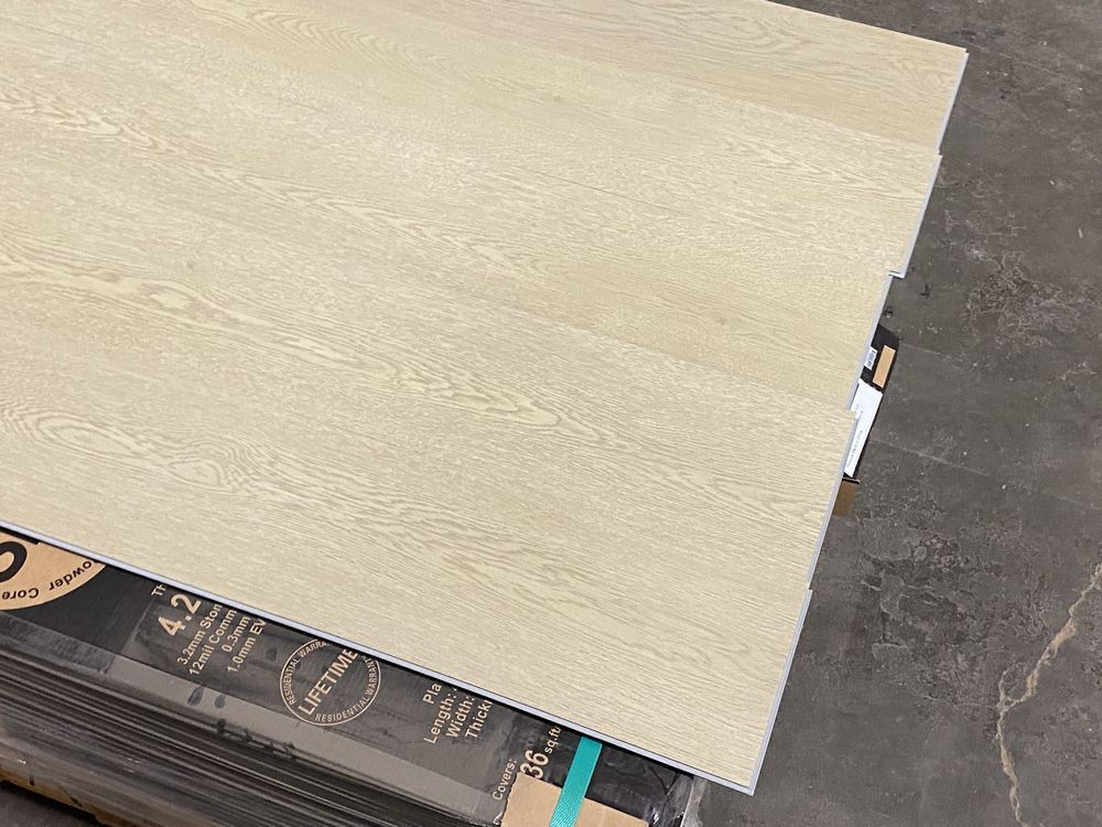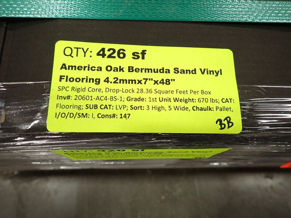 America Oak Bermuda Sand Vinyl Flooring 4.2mm x 7" x 48". SPC Rigid Core, Drop-Lock. 15 Boxes, 28.36 SF Per Box. Grade: 1st. SPC (Stone Plastic Composite) rigid flooring is set apart from other types of vinyl flooring by its uniquely resilient core layer. The core is made from a combination of natural limestone powder, polyvinyl chloride, and stabilizers. This provides an incredibly stable base for each flooring plank. *Any manufacturer warranties are NOT VALID with any purchase at our Auctions unless stated otherwise.. Weight: 670. Sold by: Square Foot. Sold as: Quantity x Price.