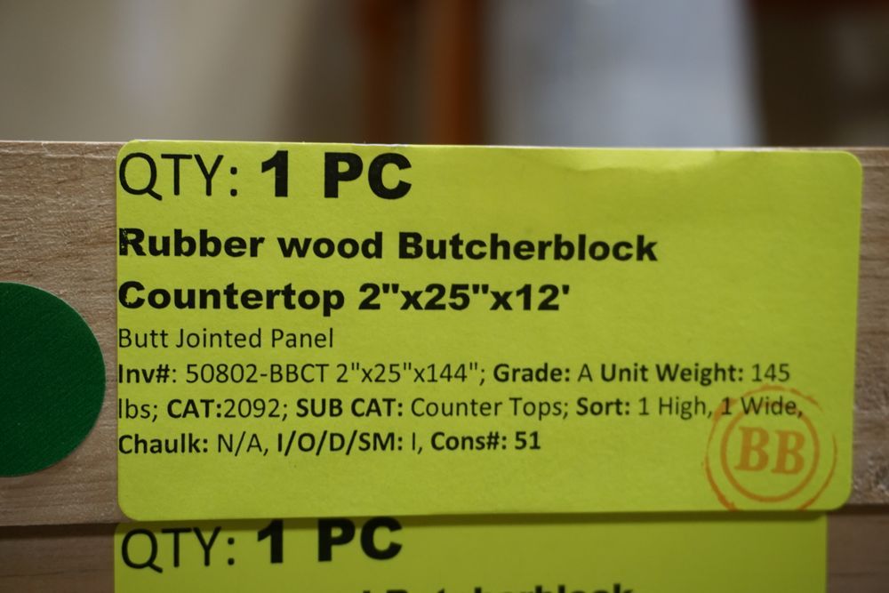 Rubber Wood Butcherblock Countertop 2" x 25" x 12'. Butt Jointed Panel. Grade: A *Any manufacturer warranties are NOT VALID with any purchase at our Auctions unless stated otherwise.. Weight: 145. Sold by: Piece. Sold as: Quantity x Price.