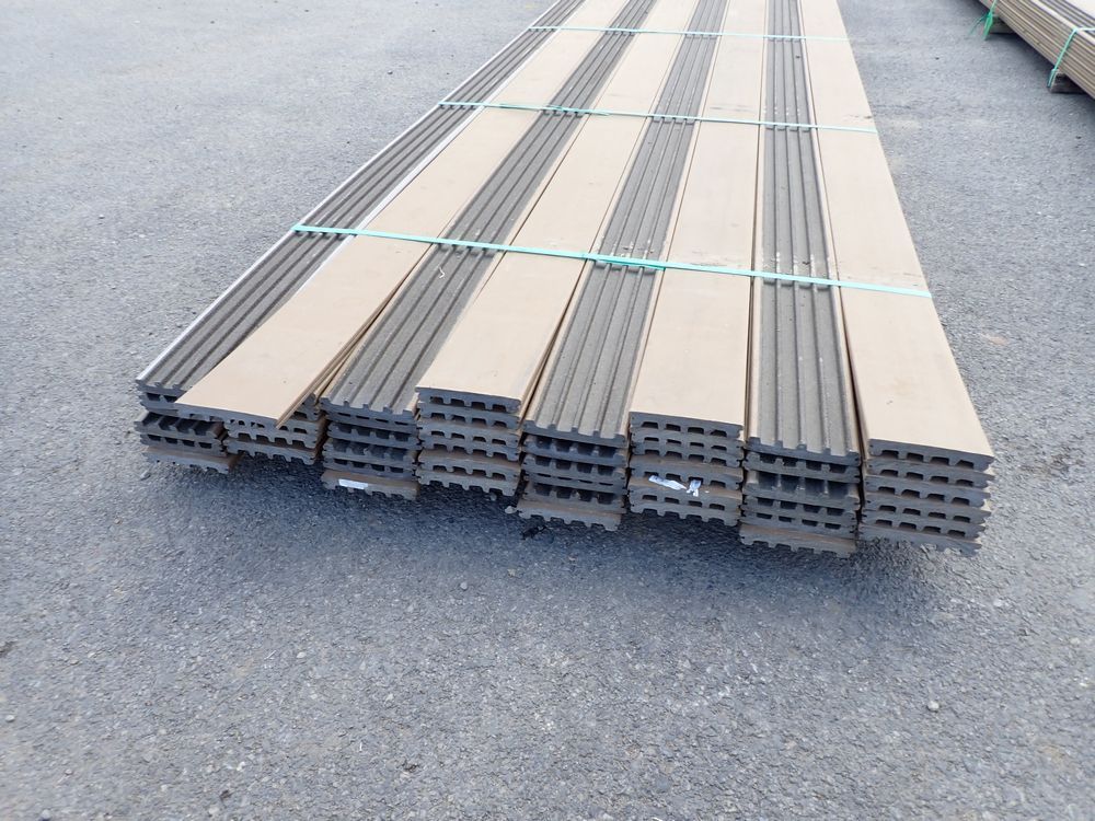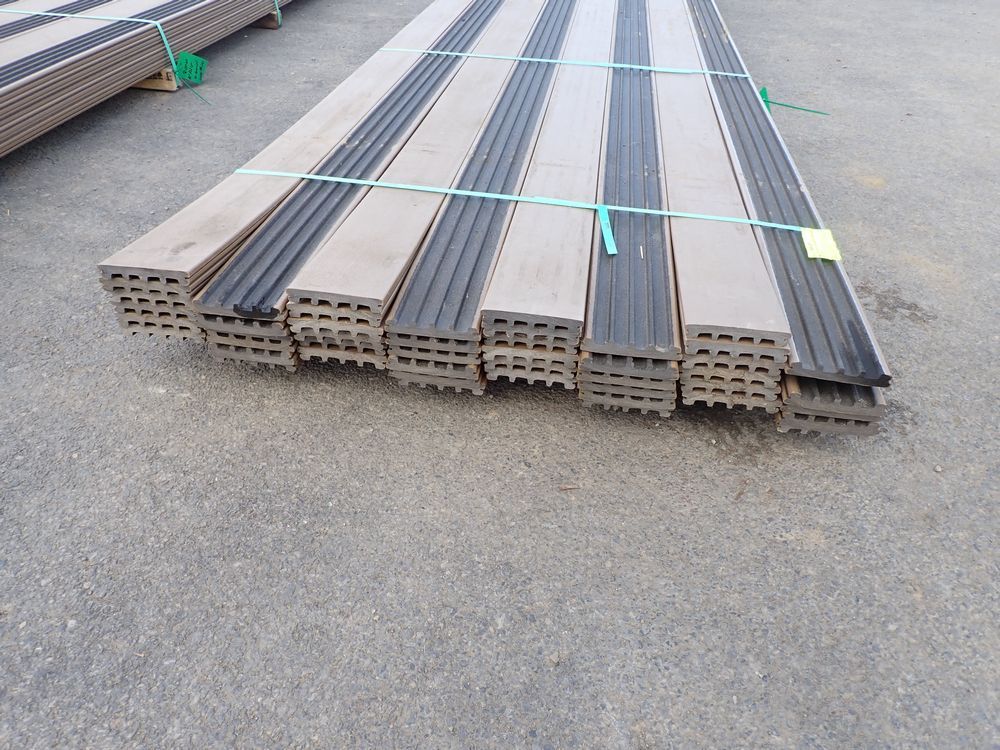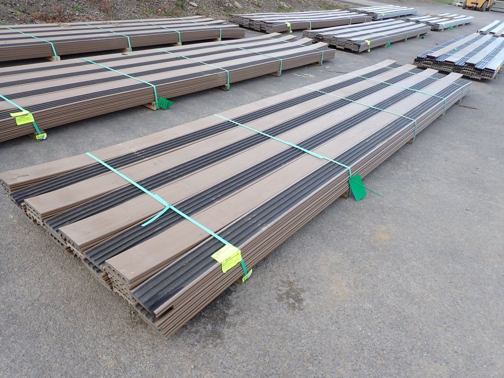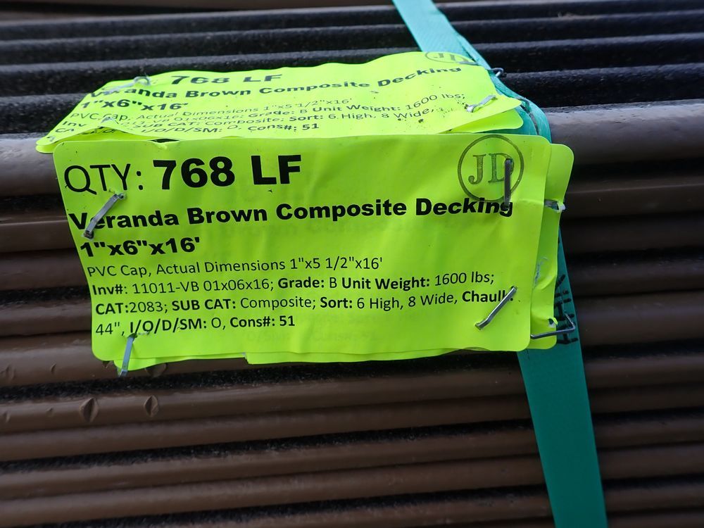 Veranda Brown Composite Decking 1" x 6" x 16'. PVC Cap, Actual Dimensions 1" x 5 1/2" x 16'. Scalloped and Grooved Edges. 48 Boards. Grade: B. *Any manufacturer warranties are NOT VALID with any purchase at our Auctions unless stated otherwise.. Weight: 1600. Sold by: Linear Foot. Sold as: Quantity x Price.