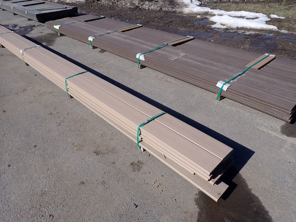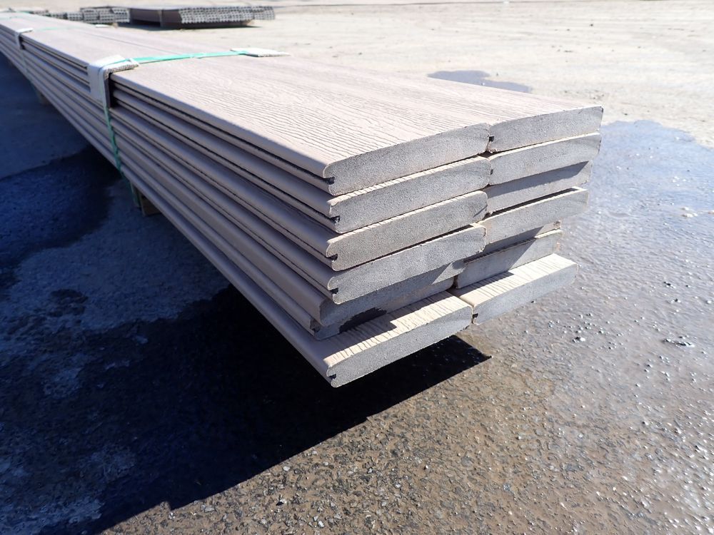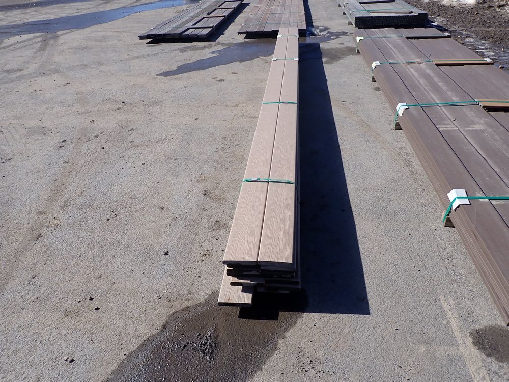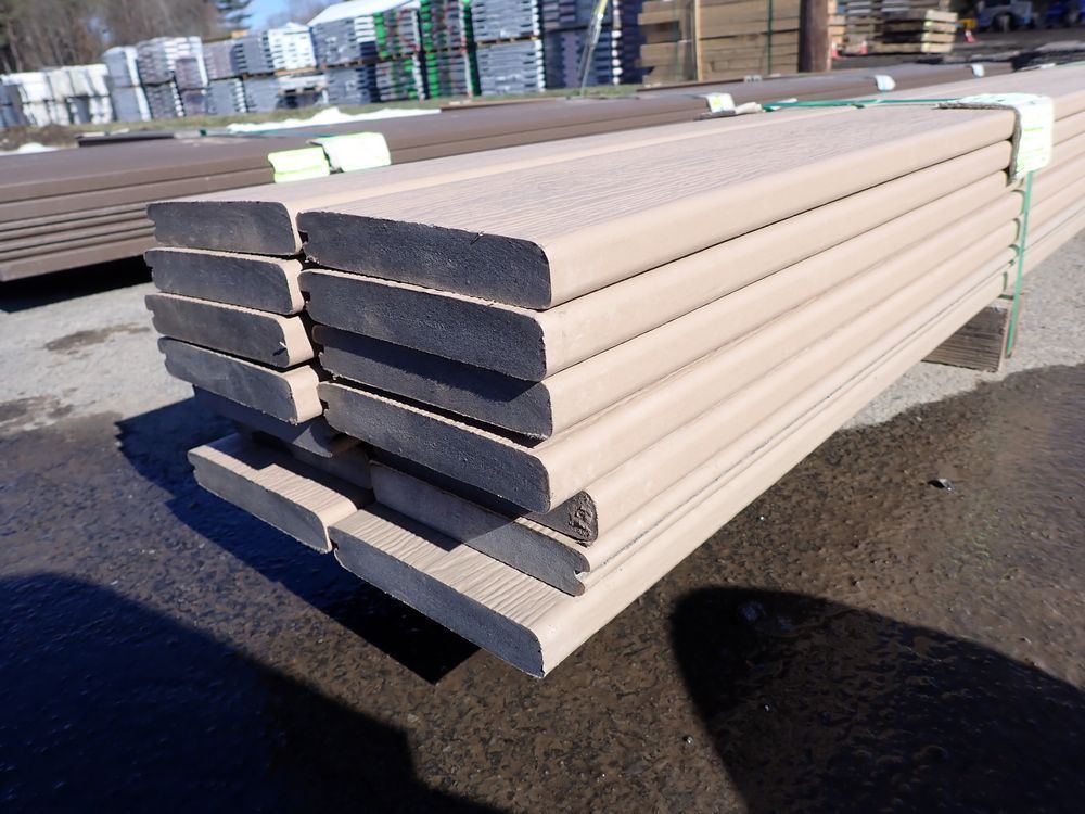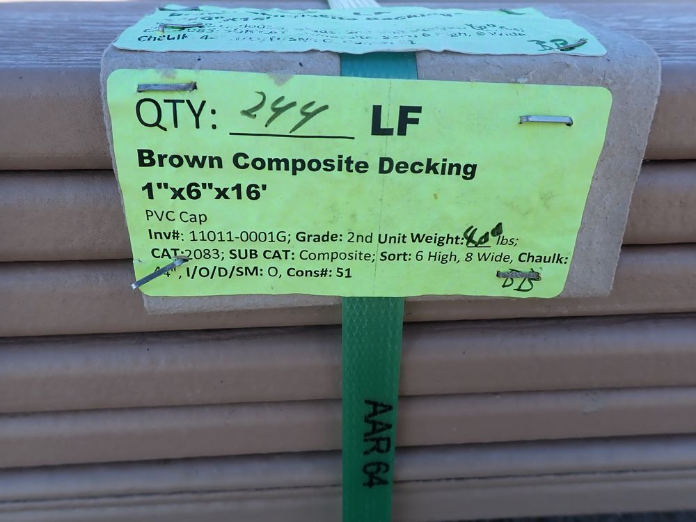 Brown Composite Decking 1" x 6" x 16'. PVC Cap, Grooved on one side, Square. Grade: 2nd. *Any manufacturer warranties are NOT VALID with any purchase at our Auctions unless stated otherwise.. Weight: 800. Sold by: Linear Foot. Sold as: Quantity x Price.