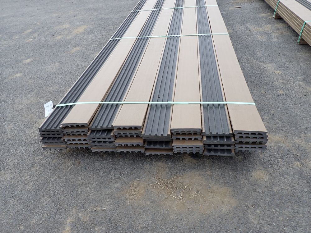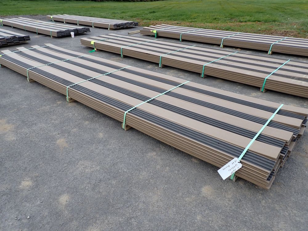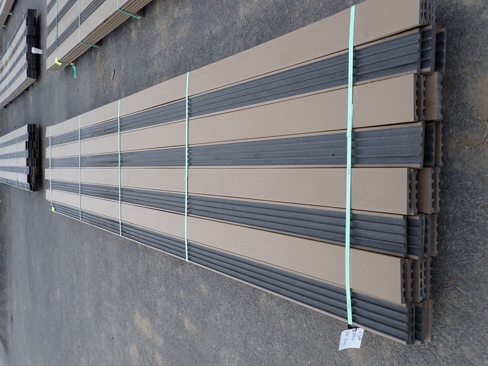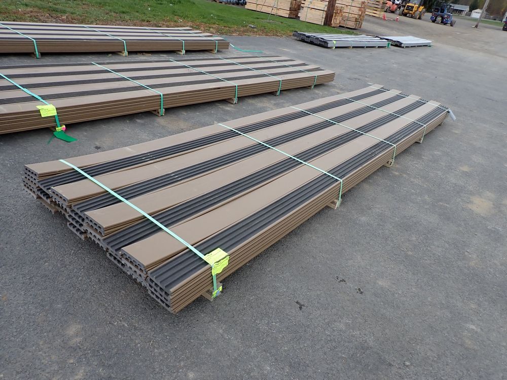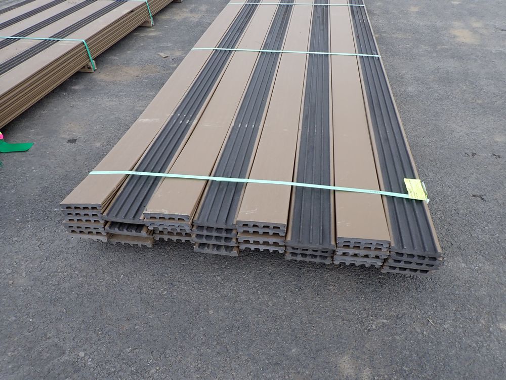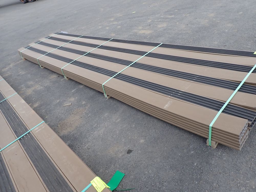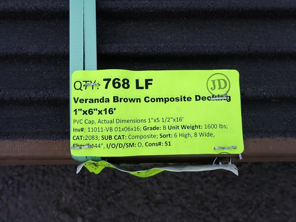 Veranda Brown Composite Decking 1" x 6" x 16'. PVC Cap, Actual Dimensions 1" x 5 1/2" x 16'. Scalloped and Grooved Edges. 48 Boards. Grade: B. *Any manufacturer warranties are NOT VALID with any purchase at our Auctions unless stated otherwise.. Weight: 1600. Sold by: Linear Foot. Sold as: Quantity x Price.