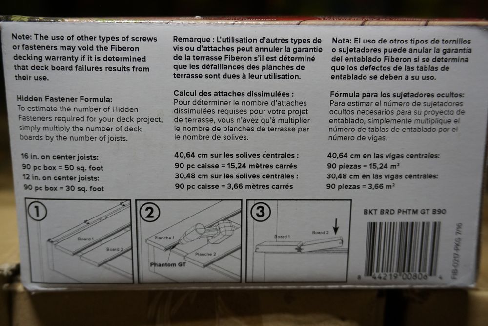 Hidden Decking Fasteners. By: Fiberon, Includes 80 line and 10 butt joint fasteners, 95 screws, 1 drive bit, Stainless Steel with Corrosion Resistant Coating, Dual Limiting Tabs for Corrosion Resistant Coating, Dual Limiting Tabs for Consistent Spacing. Grade: New. *Any manufacturer warranties are NOT VALID with any purchase at our Auctions unless stated otherwise.. Weight: 1.85. Sold by: Box. Sold as: Quantity x Price.