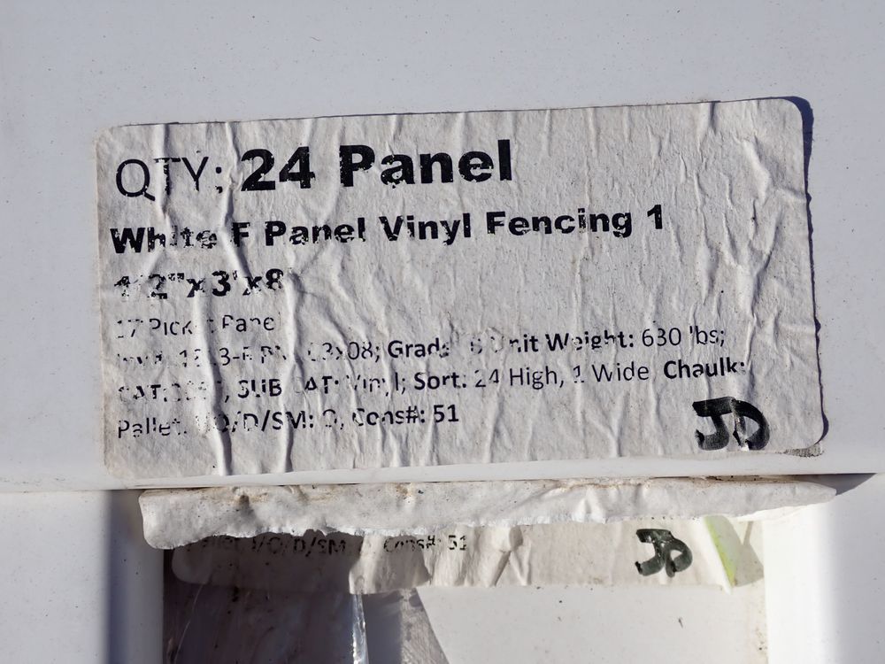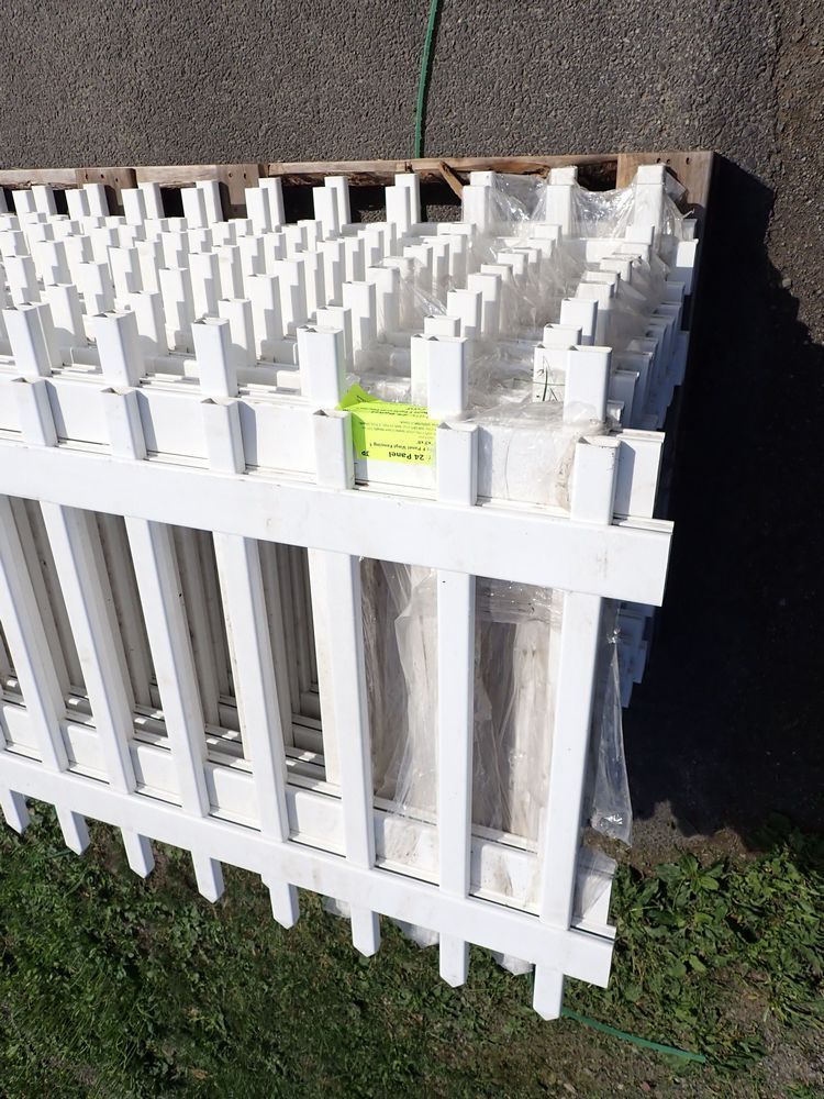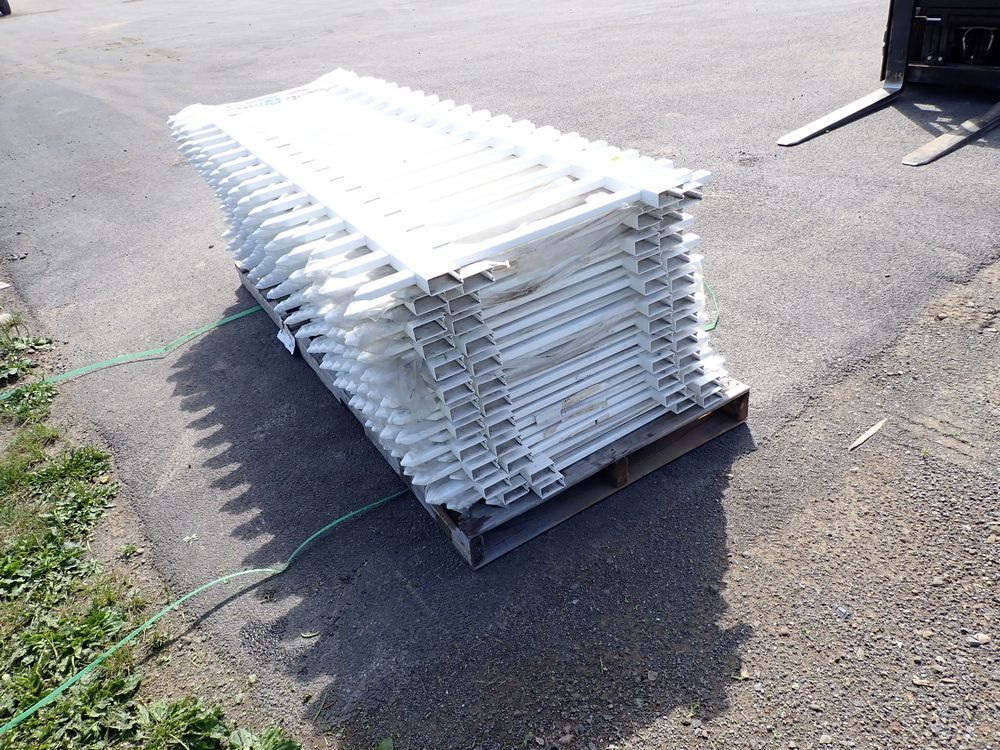 White F Vinyl Fencing 1 1/2" x 3' x 8'. 17 Picket Panel. Grade: B. *Any manufacturer warranties are NOT VALID with any purchase at our Auctions unless stated otherwise.. Weight: 630. Sold by: Panel. Sold as: Quantity x Price.