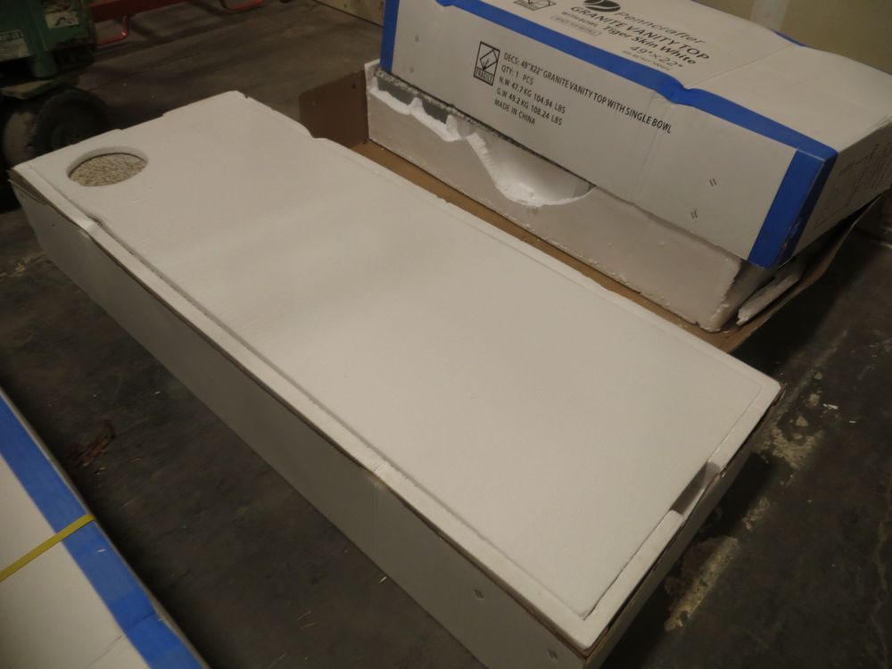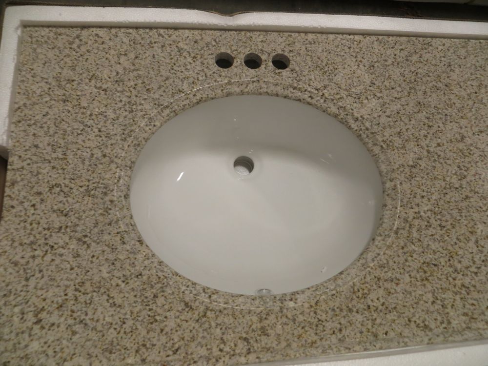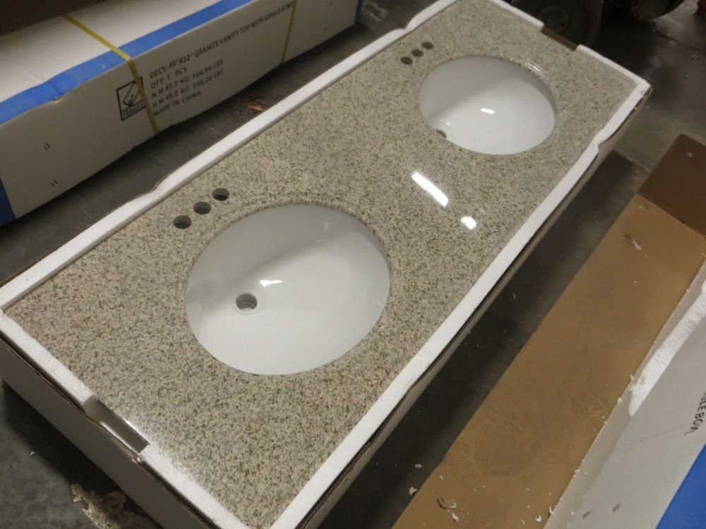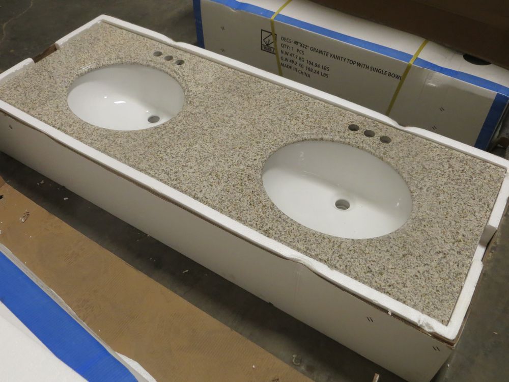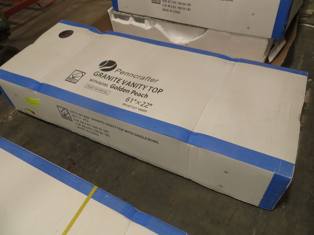 Golden Peach Granite Vanity Top 61" x 22". Penncrafter, with Bowl & Backsplash; Grade New *Any manufacturer warranties are NOT VALID with any purchase at our Auctions unless stated otherwise.. Weight: 128. Sold by: Piece. Sold as: Quantity x Price.