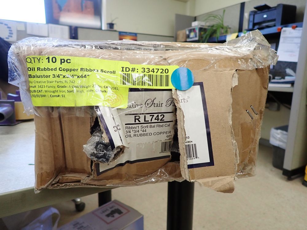 Oil Rubbed Copper Ribbon Scroll Baluster 3/4"x3/4"x44". By Creative Stair Parts, RL 742. Grade: A *Any manufacturer warranties are NOT VALID with any purchase at our Auctions unless stated otherwise.. Weight: 23 lbs.. Sold by: Piece. Sold as: Quantity x Price.