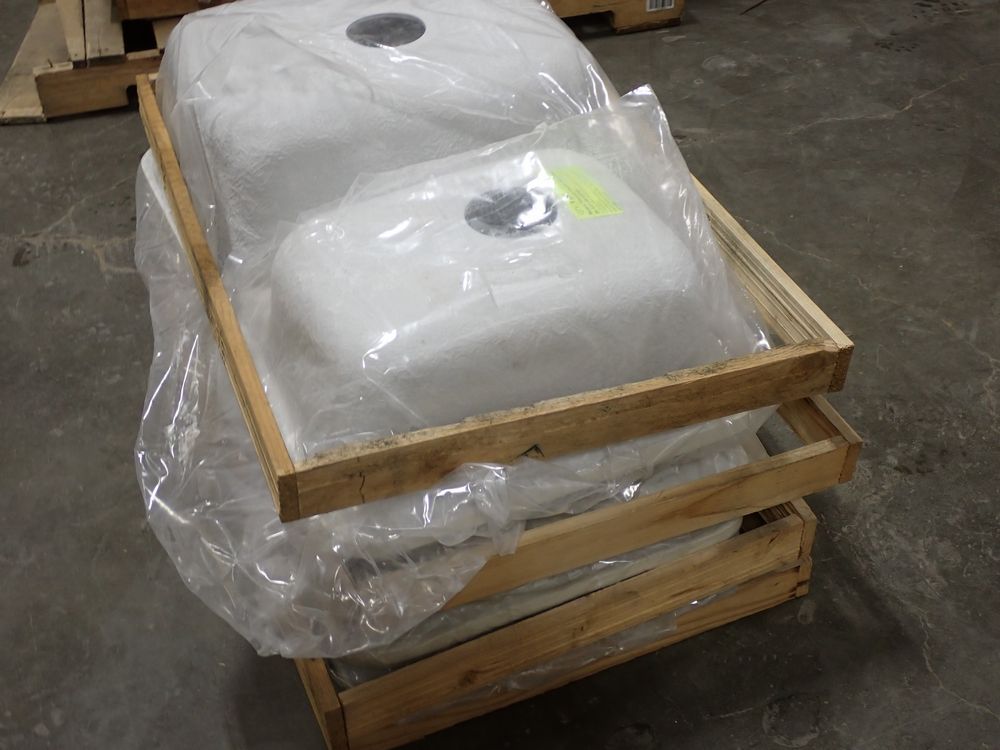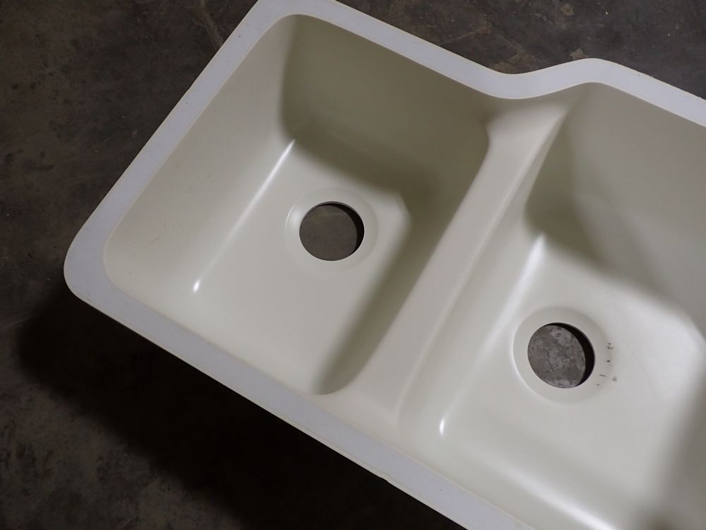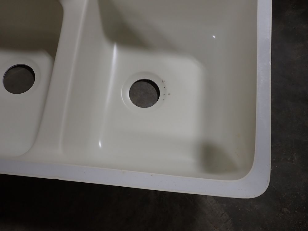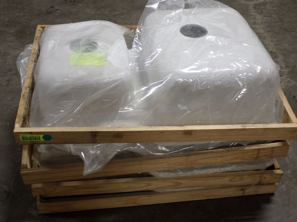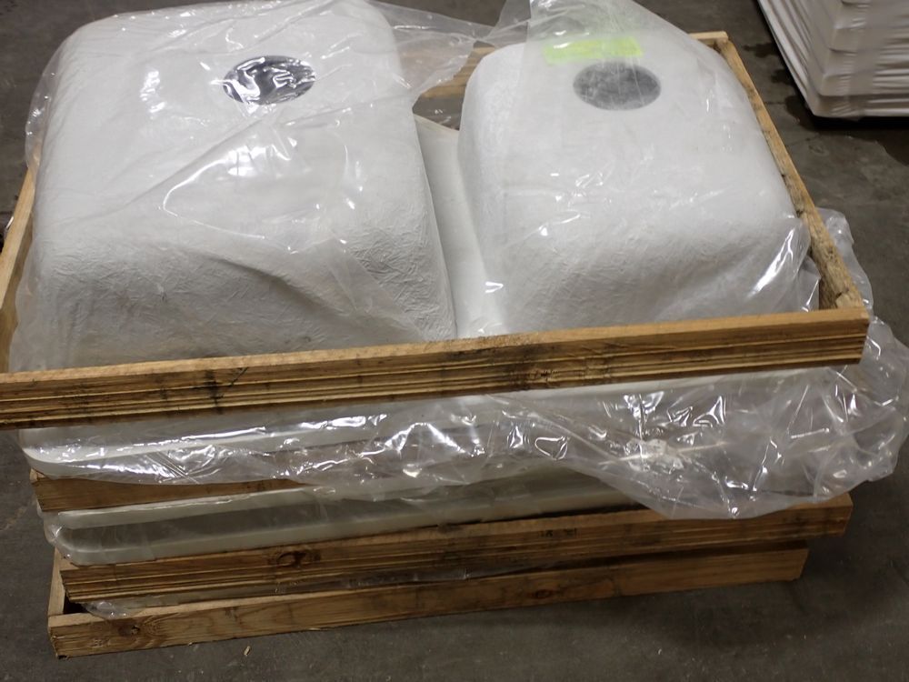 Bisque Tuscany Double Bowl Sink 29" x 18" x 9". By: Plexicor. Actual Dimensions are 29 1/4" x 18 5/8" x 9". Offset-Bowl 1 is 15 5/8" x 18 5/8" x 8, Bowl 2 is 12" x 15 5/8" x 7". Grade: A *Any manufacturer warranties are NOT VALID with any purchase at our Auctions unless stated otherwise.. Weight: x. Sold by: Piece. Sold as: Quantity x Price.