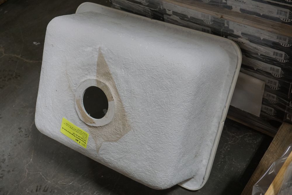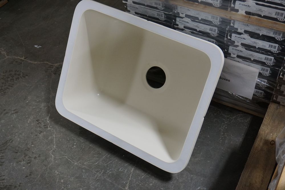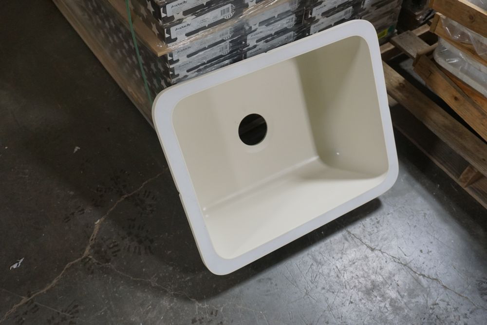 Bisque Madrid Single Bowl Sink 23". By: Plexcor. Actual Dimensions: 23" (L) x 18 1/2" (W) x 8 1/2" (D). Grade: A. *Any manufacturer warranties are NOT VALID with any purchase at our Auctions unless stated otherwise.. Weight: x. Sold by: Piece. Sold as: Quantity x Price.