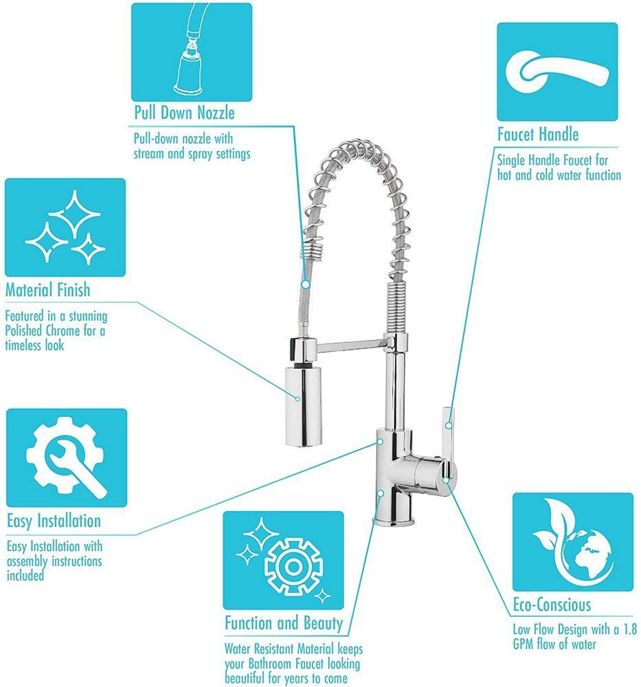 Commercial Style Pull Down Kitchen Faucet, Polished Chrome. By: Aqua Vista. Grade: A. *Any manufacturer warranties are NOT VALID with any purchase at our Auctions unless stated otherwise.. Weight: 6. Sold by: Piece. Sold as: Quantity x Price.