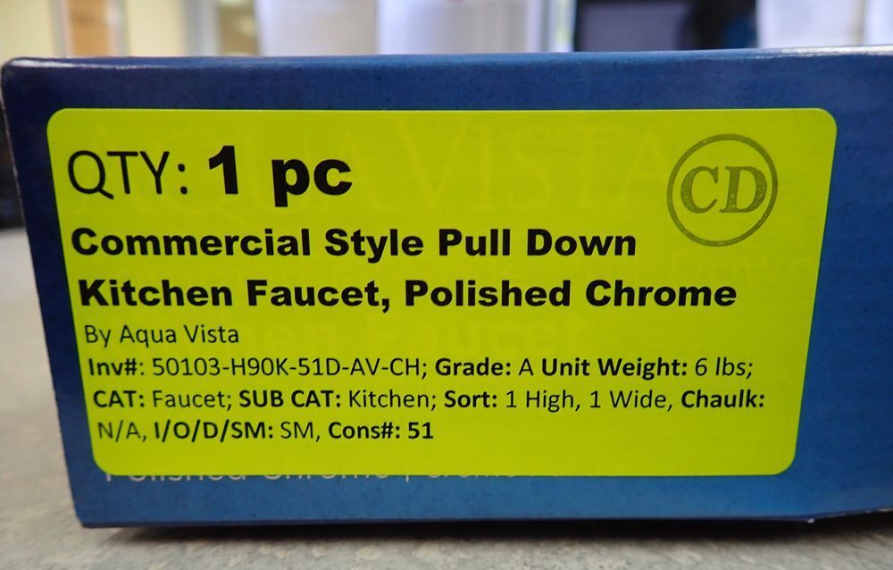 Commercial Style Pull Down Kitchen Faucet, Polished Chrome. By: Aqua Vista. Grade: A *Any manufacturer warranties are NOT VALID with any purchase at our Auctions unless stated otherwise.. Weight: 6. Sold by: Piece. Sold as: Quantity x Price.