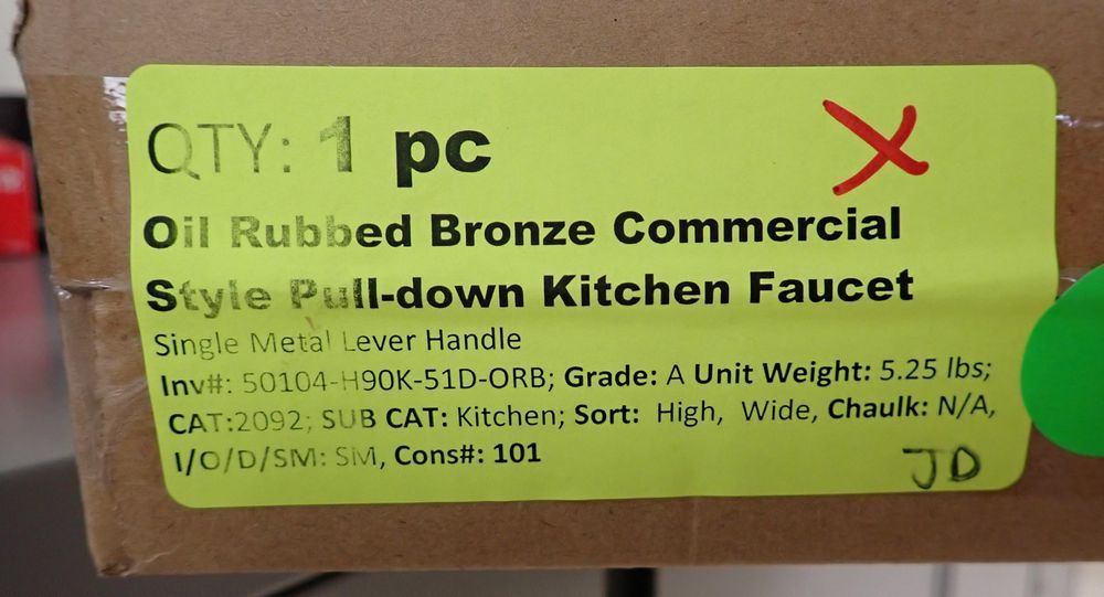 Oil Rubbed Bronze Commercial Style Pull-Down Kitchen Faucet. Single Metal Lever Handle. Grade: A. *Any manufacturer warranties are NOT VALID with any purchase at our Auctions unless stated otherwise.. Weight: 5.25. Sold by: Piece. Sold as: Quantity x Price.