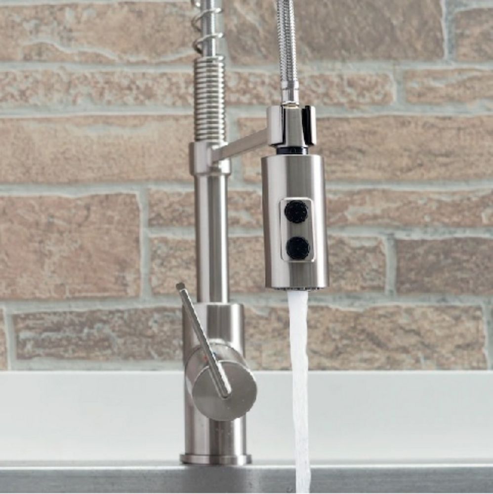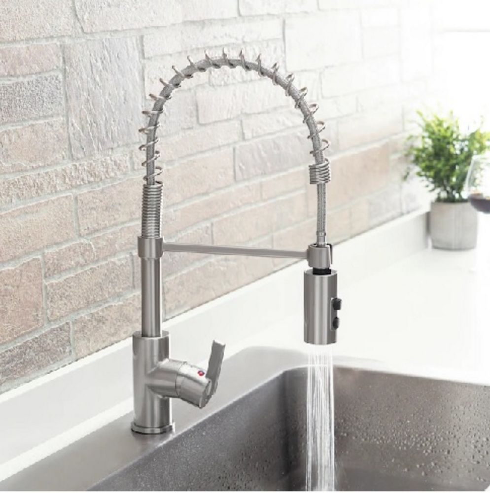 Brushed Nickel Commercial Style Pull-Down Kitchen Faucet. Single Metal Lever Handle. Grade: A. *Any manufacturer warranties are NOT VALID with any purchase at our Auctions unless stated otherwise.. Weight: 5.25. Sold by: Piece. Sold as: Quantity x Price.