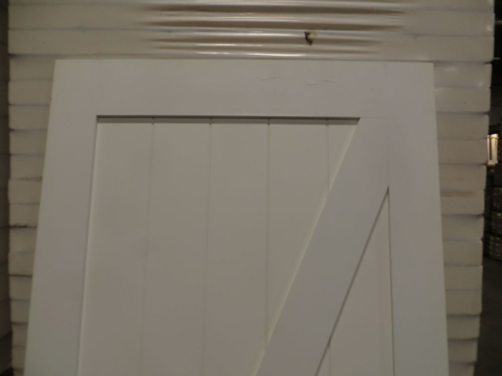 Interior, Primed Barn Door, 36"x84" Z Panel. Has a Kerf, Barn Door Hardware is not included. Grade: 1st Quality *Any manufacturer warranties are NOT VALID with any purchase at our Auctions unless stated otherwise.. Weight: X. Sold by: Door. Sold as: Quantity x Price.