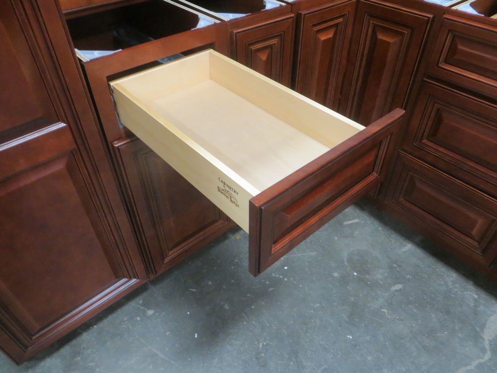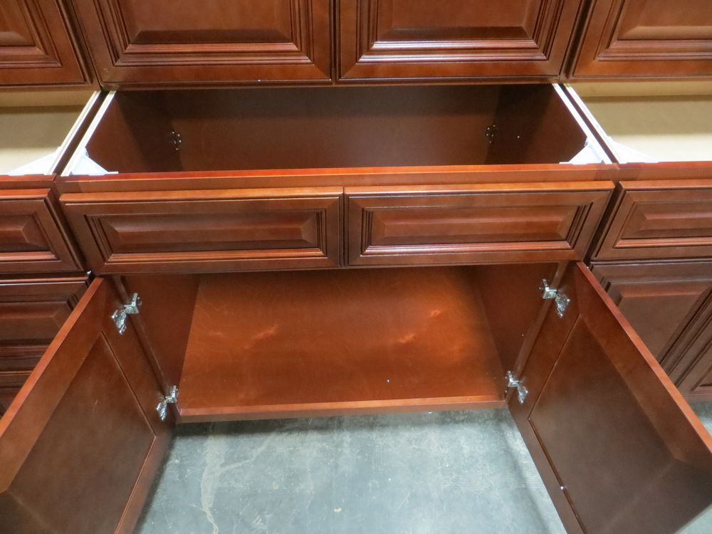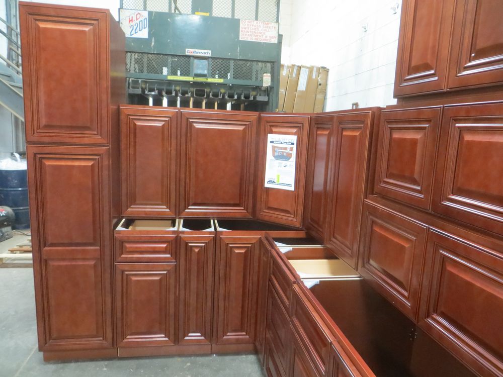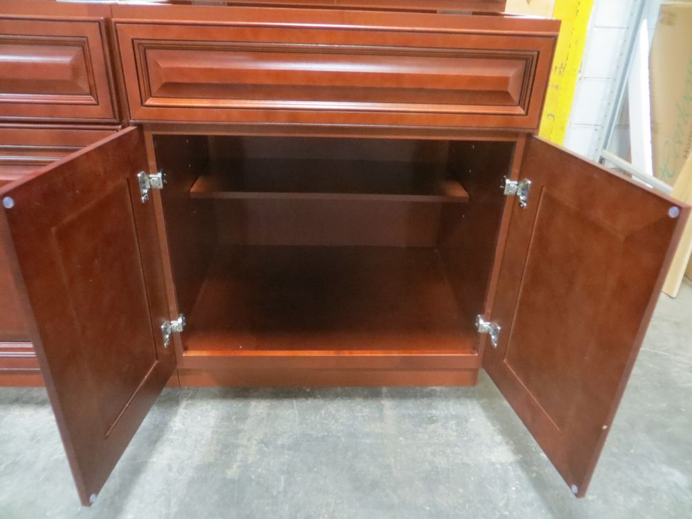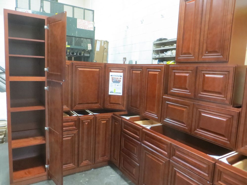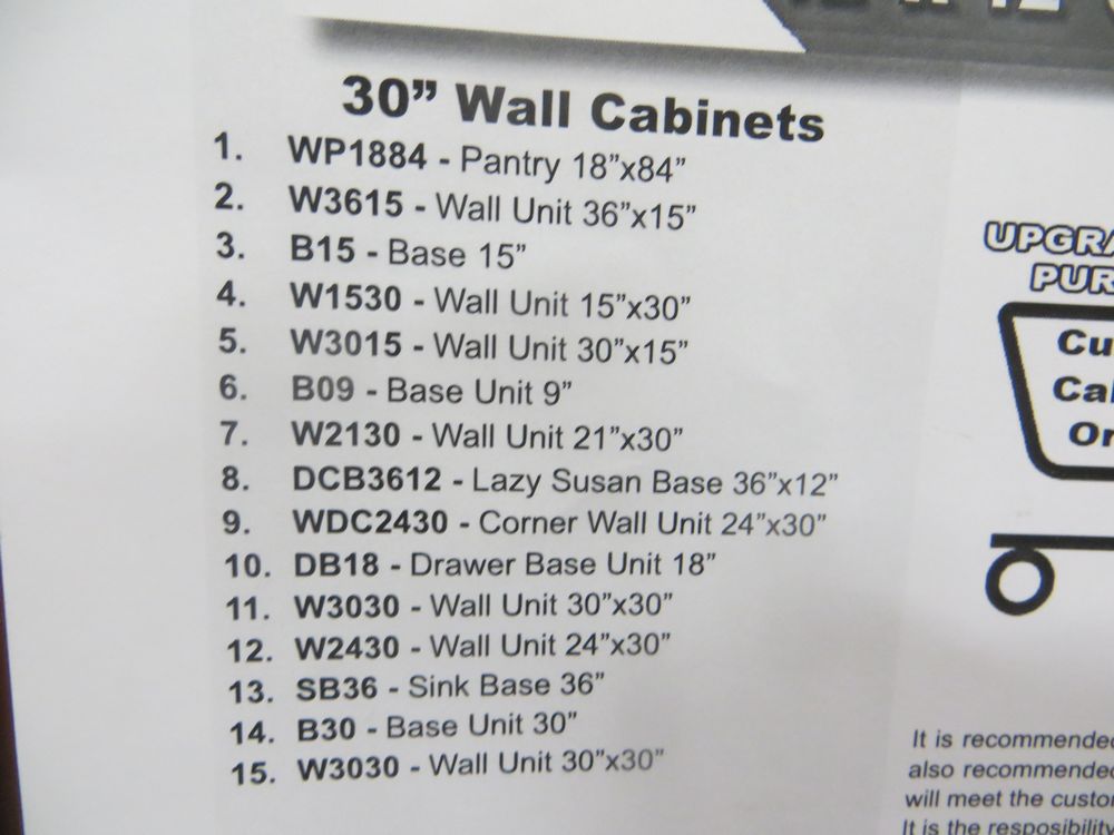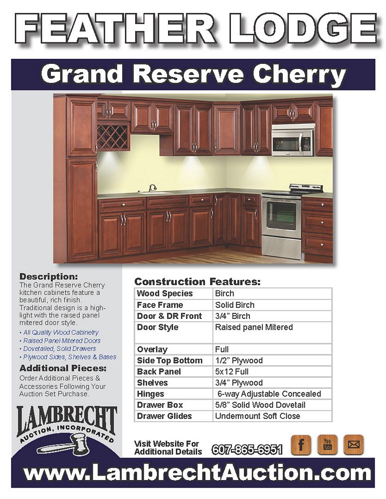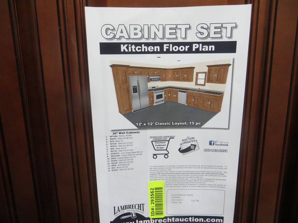 Grand Reserve Cherry Kitchen Cabinet Set 12'x12'. Classic Layout. 30" Walls. ASSEMBLY OPTION IS NOT AVAILABLE FOR THIS SET. By Feather Lodge, ADDITIONAL CABINETS ARE UNAVAILABLE BECAUSE THIS PRODUCT LINE IS DISCONTINUED. -3/4” Solid Birch Face Frame -Raised Panel Mitered Door -Full Overlay -1/2” Plywood Box Construction -3/4” Plywood Shelves -Matching Interior/Exterior -6-Way Adjustable Concealed Soft Close Door Hinges -5 Piece Drawer Front -5/8” Thick Solid Wood Dovetail Drawer Box -Undermount Full Extension Soft Close Drawer Glides. Enclosed in each cabinet set will be a Build Sheet which lists the individual cabinets in each set. As the cabinets are palletized each cabinet will be checked off and signed by our staff member to ensure that the set is complete at the time of pick-up. Please keep this Build Sheet on hand because it will be required if there is an issue with your cabinet set. Cabinet issues will not be addressed without this build sheet. *Any manufacturer warranties are NOT VALID with any purchase at our Auctions unless stated otherwise.. Weight: x. Sold by: Set. Sold as: Quantity x Price.