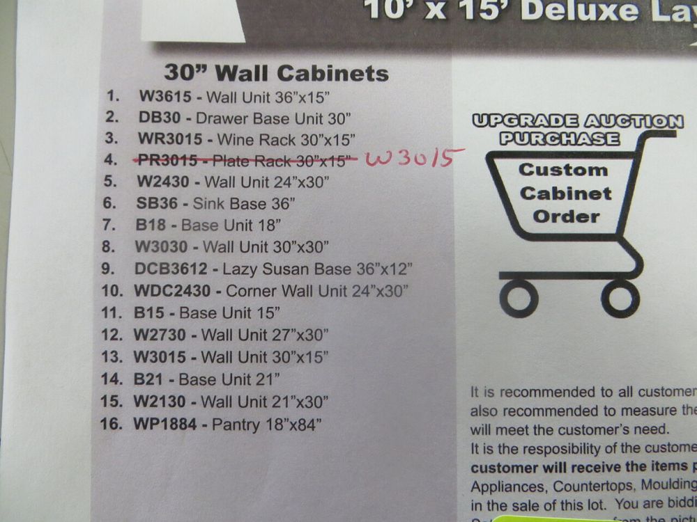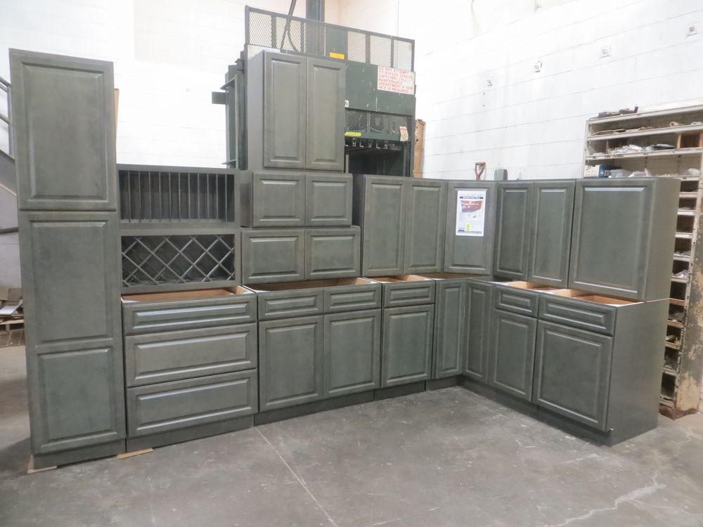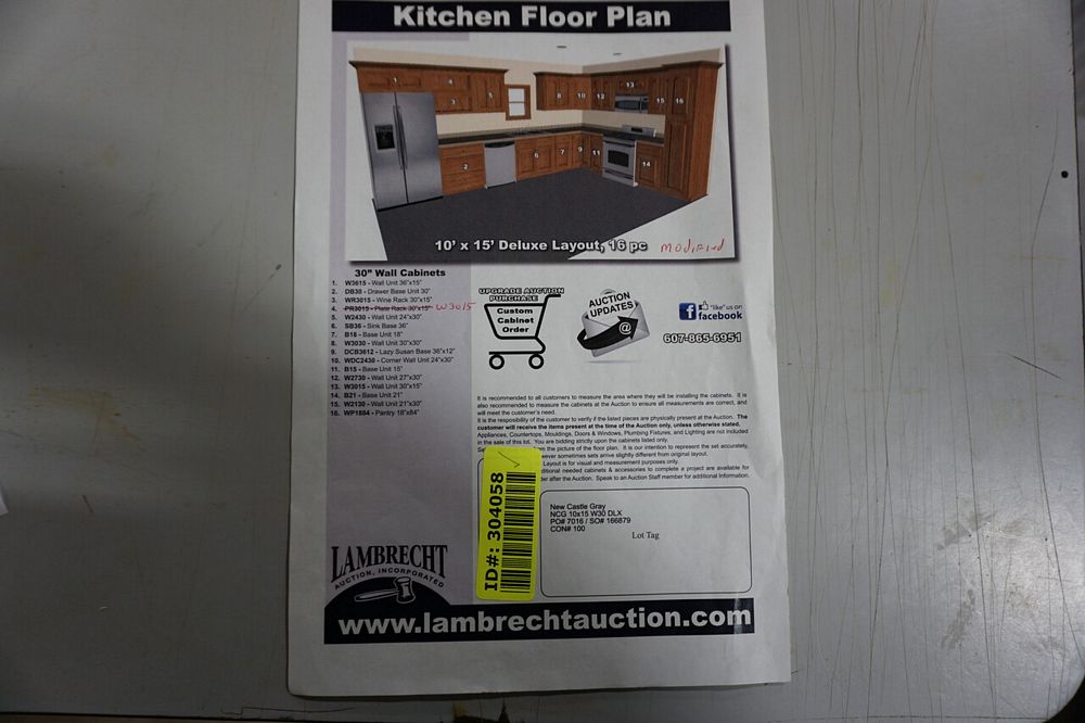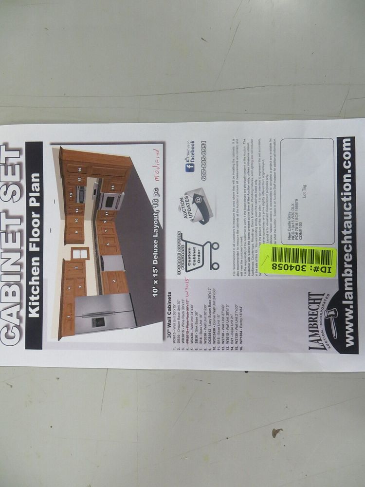 New Castle Gray Kitchen Cabinet Set 10' x 15'. Modified Deluxe Layout. 30" Walls. ASSEMBLY OPTION IS NOT AVAILABLE FOR THIS SET. By GHI. 3/4” Solid Maple Face Frame -Solid Maple Raised Panel Doors and Drawer Fronts -1/2” Plywood Box Construction with Wood Veneer Interiors and Exteriors -3/4” plywood Shelves -Full overlay Doors and Drawer Fronts -Solid Wood Dovetail Drawer Box -Soft Close Full Extension Drawer Gliders -Hand Rubbed Glaze -6-Way Adjustable Concealed Hinges -Soft Close. Enclosed in each cabinet set will be a Build Sheet which lists the individual cabinets in each set. As the cabinets are palletized each cabinet will be checked off and signed by our staff member to ensure that the set is complete at the time of pick-up. Please keep this Build Sheet on hand because it will be required if there is an issue with your cabinet set. Cabinet issues will not be addressed without this build sheet. *Any manufacturer warranties are NOT VALID with any purchase at our Auctions unless stated otherwise.. Weight: x. Sold by: Set. Sold as: Quantity x Price.