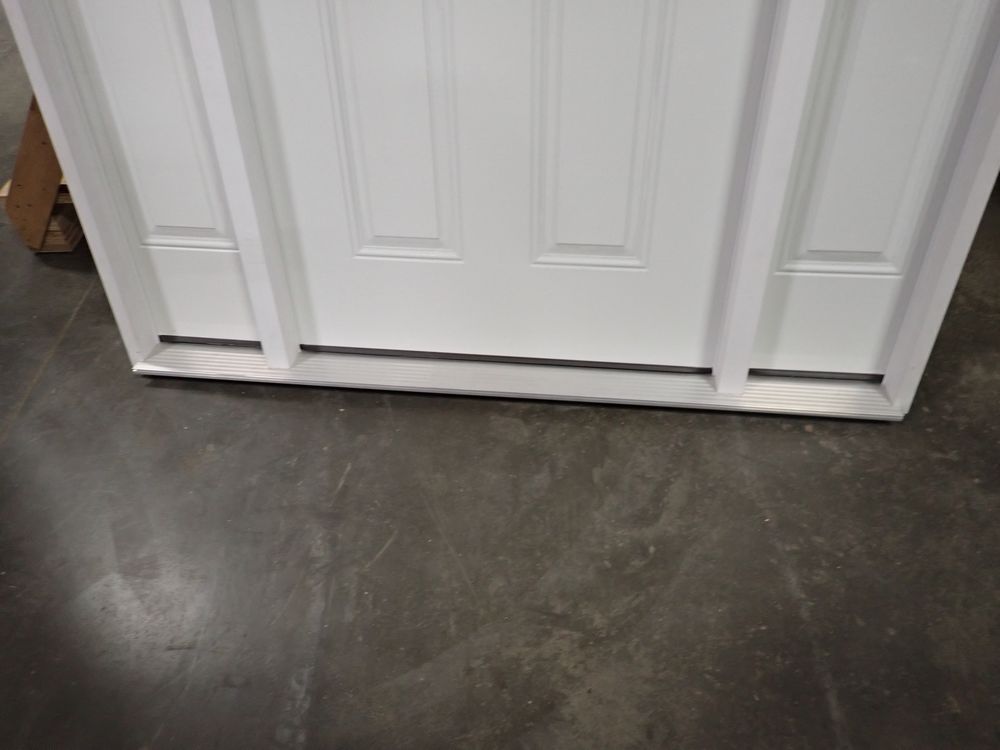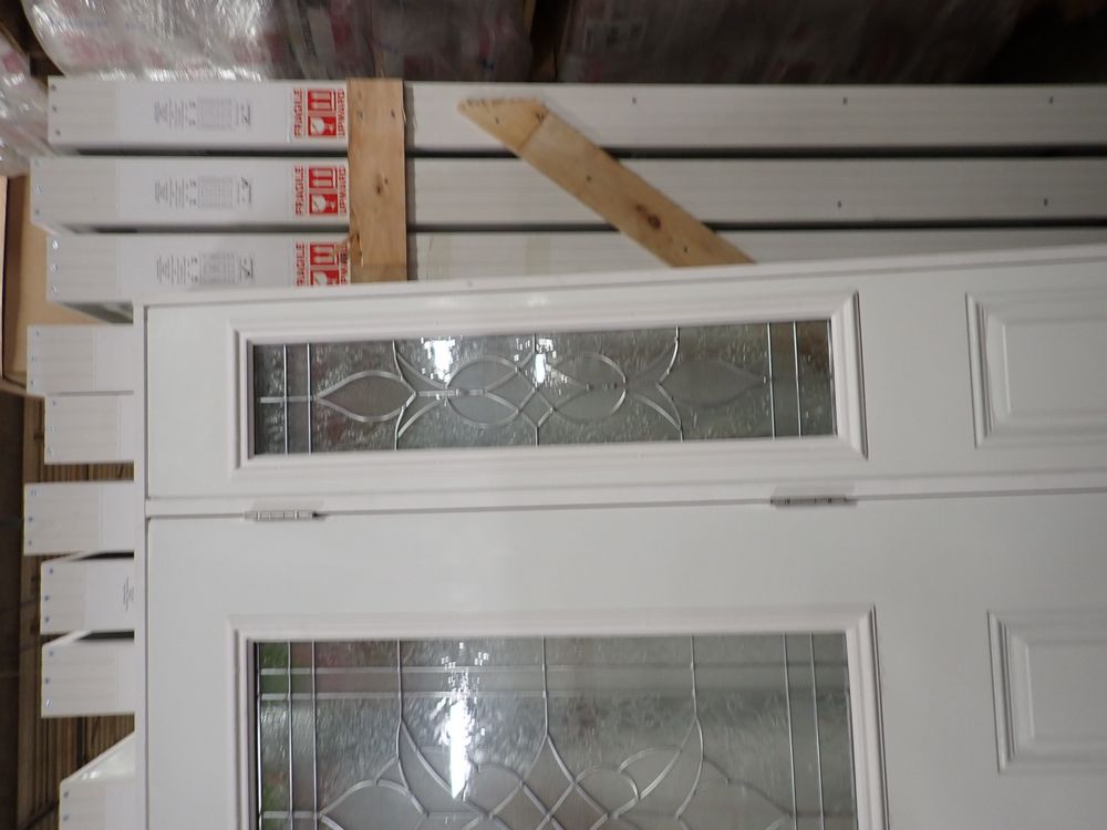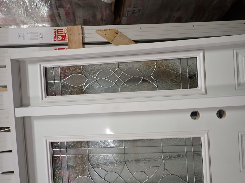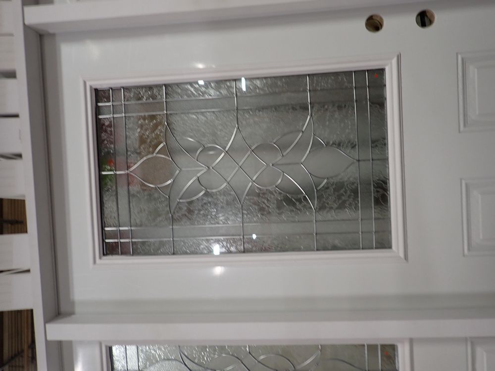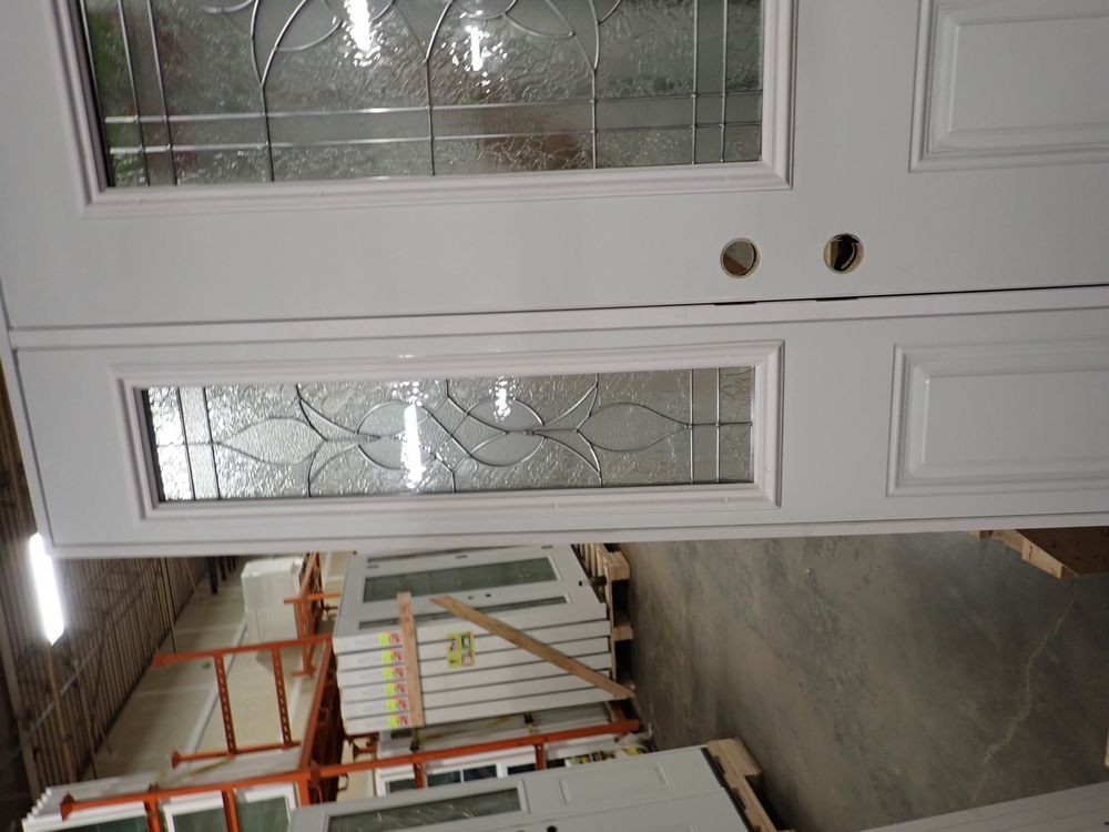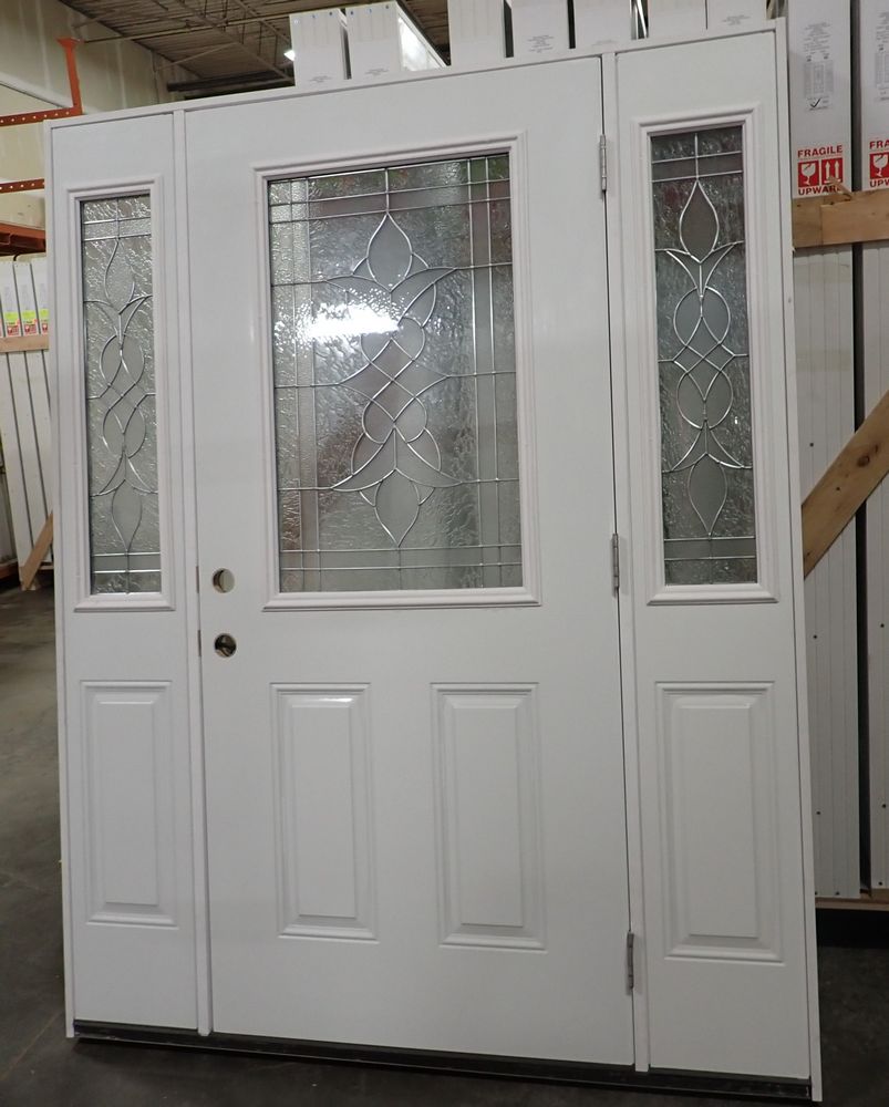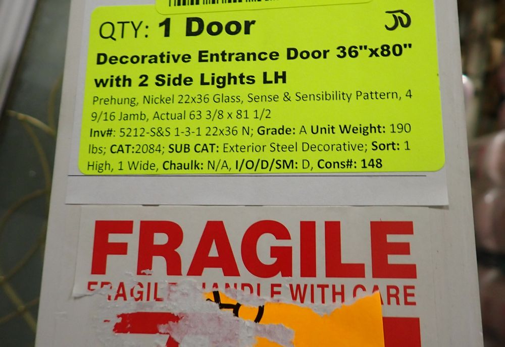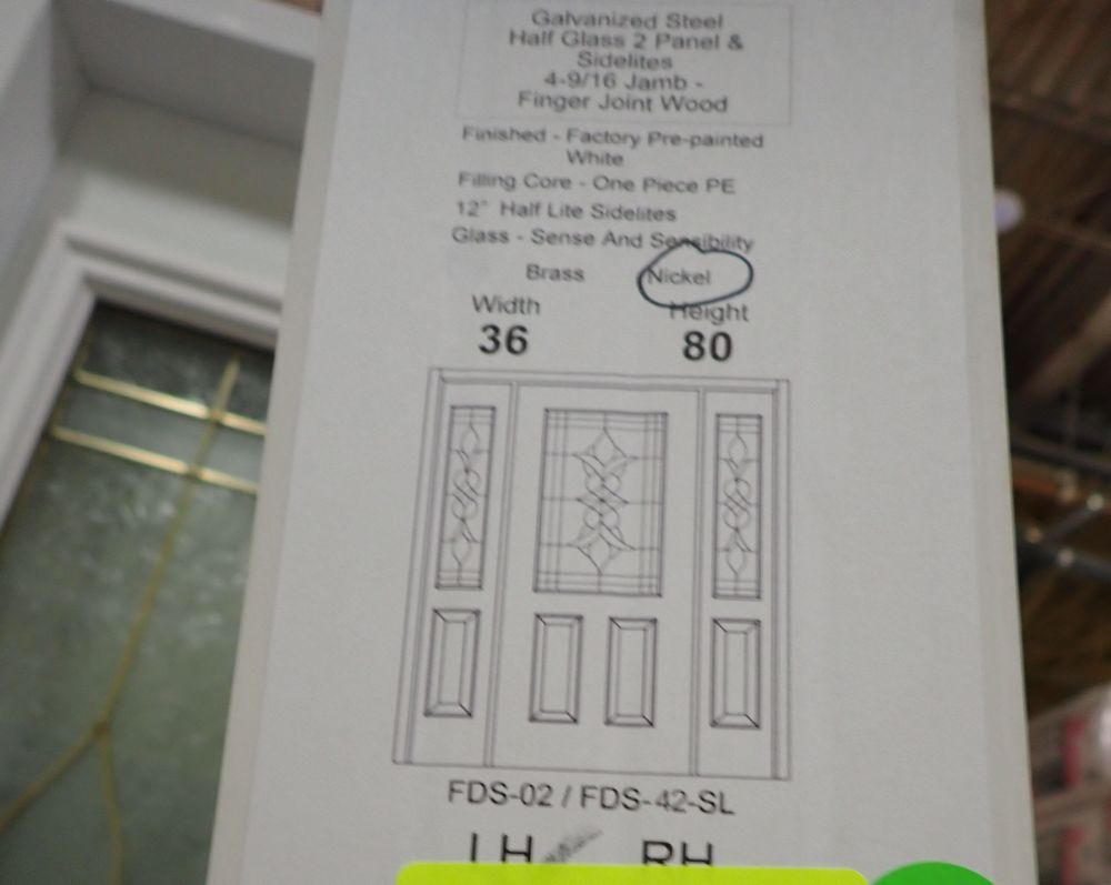 Decorative Entrance Door 36" x 80" With 2 Side Lights LH. Prehung, Nickel 22" x 36" Glass, Sense & Sensibilty Pattern, 4 9/16" Jamb, Actual Size 63 3/8" x 81 1/2". Grade: A *Any manufacturer warranties are NOT VALID with any purchase at our Auctions unless stated otherwise.. Weight: 190. Sold by: Door. Sold as: Quantity x Price.