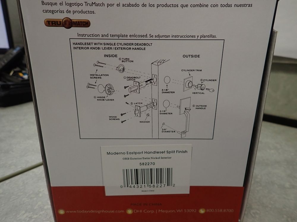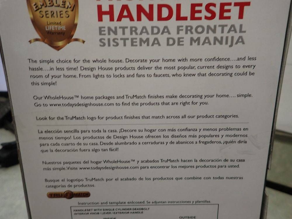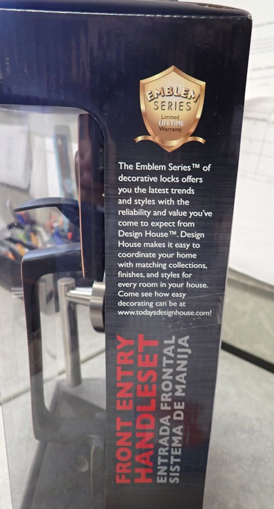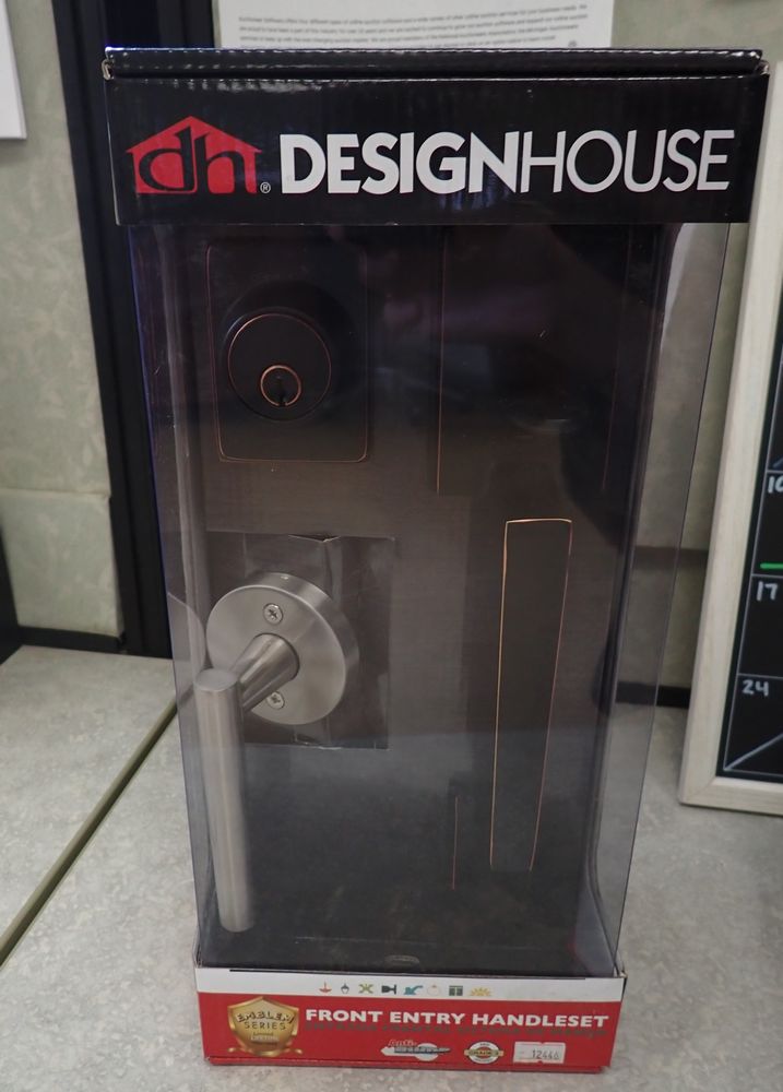 Front Entry Handleset. By: Design House, 2 3/8" or 2 3/4" adjustable latch, 1" throw deadbolt with hardene steel pin, All steel Mechanism, Solid Brass Construction. Grade: New. *Any manufacturer warranties are NOT VALID with any purchase at our Auctions unless stated otherwise.. Weight: x. Sold by: Piece. Sold as: Quantity x Price.