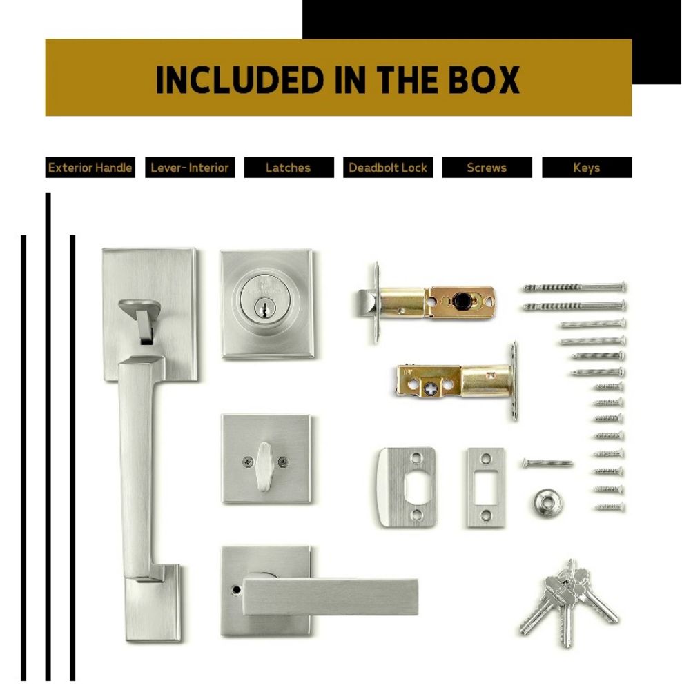 Satin Nickel Entrance Handleset. By: Mega. Comes with Door Lever, Handle, and Deadbolt Lock. Grade: A. *Any manufacturer warranties are NOT VALID with any purchase at our Auctions unless stated otherwise.. Weight: 5. Sold by: Piece. Sold as: Quantity x Price.