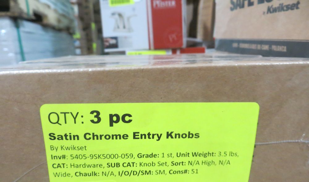 Satin Chrome Entry Knobs. By: Kwikset *Any manufacturer warranties are NOT VALID with any purchase at our Auctions unless stated otherwise.. Weight: 3.5. Sold by: Piece. Sold as: Quantity x Price.