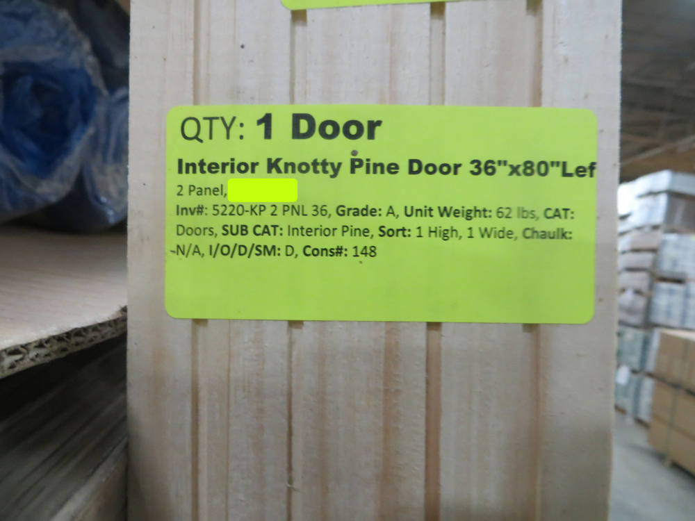 Interior Knotty Pine Door 36" x 80" LH (UNASSEMBLED). 2 Panel, Unassembled. Grade: A *Any manufacturer warranties are NOT VALID with any purchase at our Auctions unless stated otherwise.. Weight: 62. Sold by: Door. Sold as: Quantity x Price.